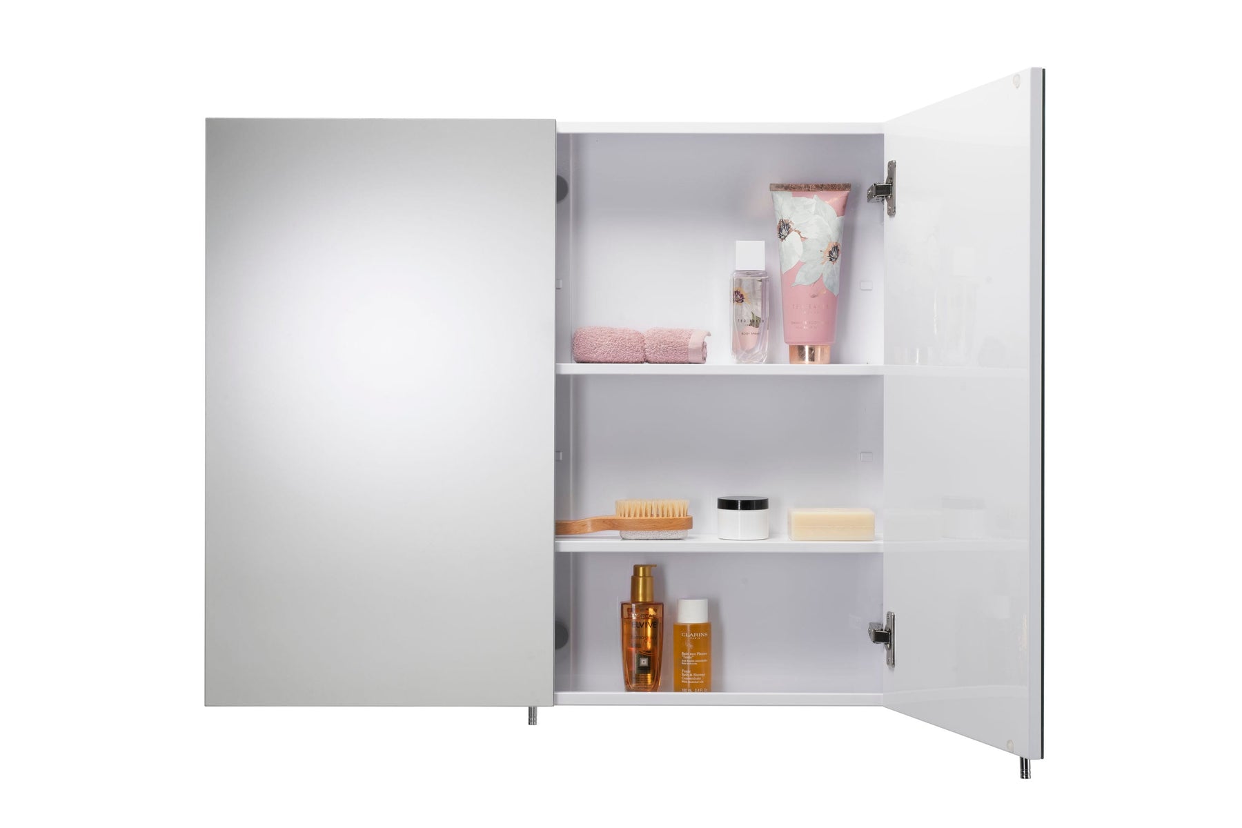 Transform your bathroom retreat with the Croydex mirrored cabinet, where sleek, modern elegance meets practical functionality. Its frameless brilliance and crisp white finish reflect not just light, but also an uncompromising dedication to refined design. Conceal daily essentials behind double doors, reducing clutter while maximizing style. Imagine this piece as a central element in your bathroom sanctuary, exuding luxury and sophistication, all while providing invaluable storage.