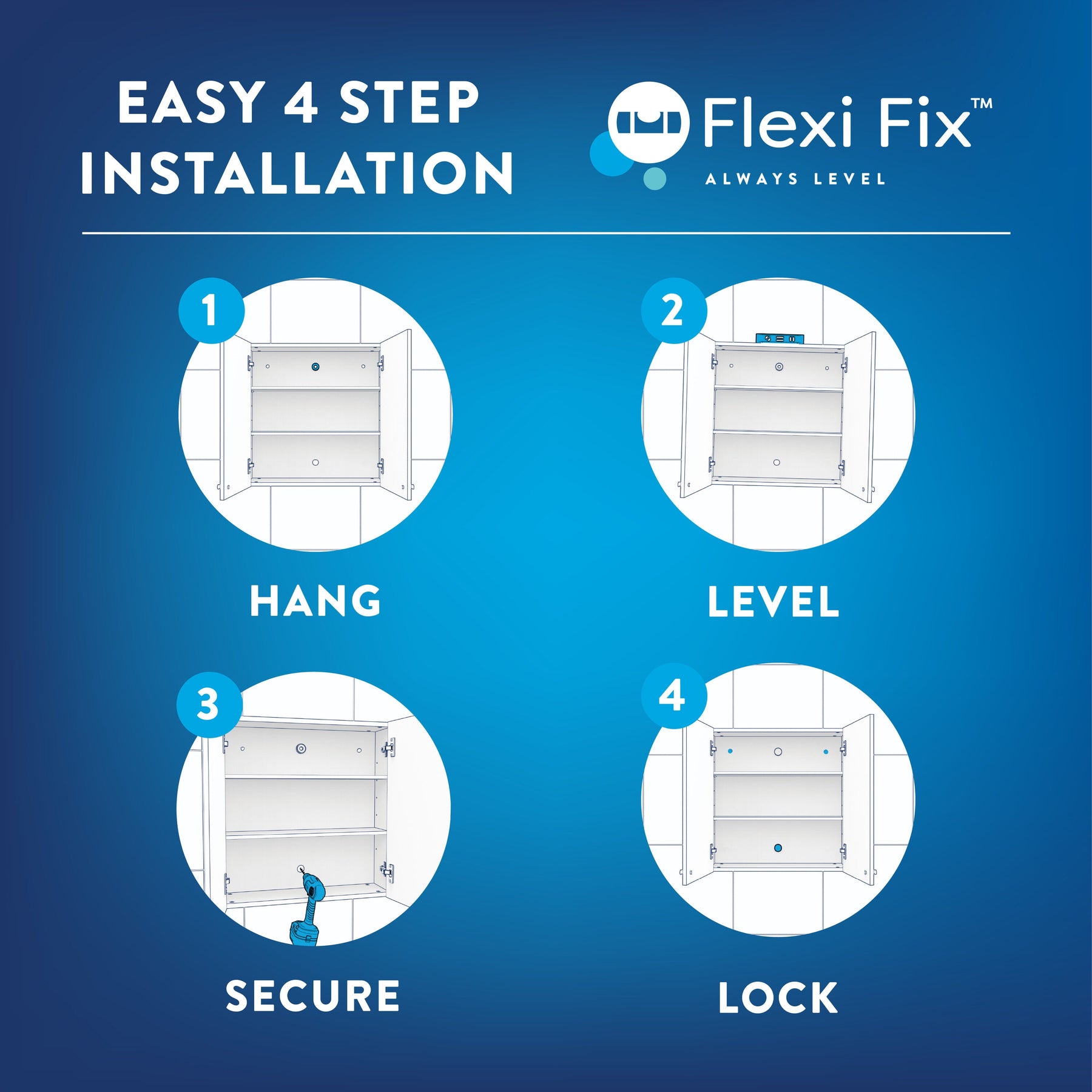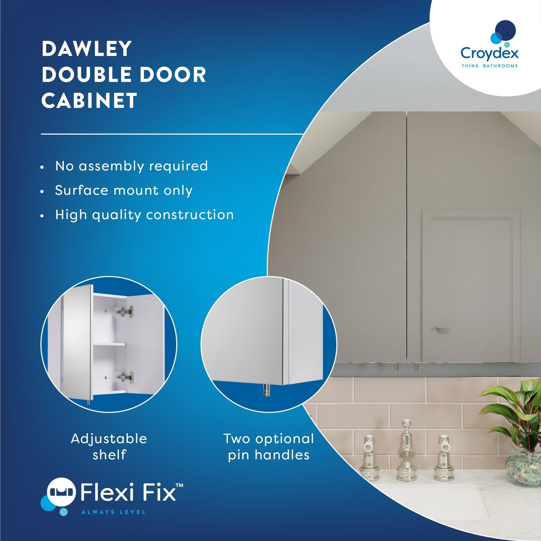 A: The cabinet uses the Croydex Flexi Fix system, which allows for simple surface mounting with all necessary hardware included.