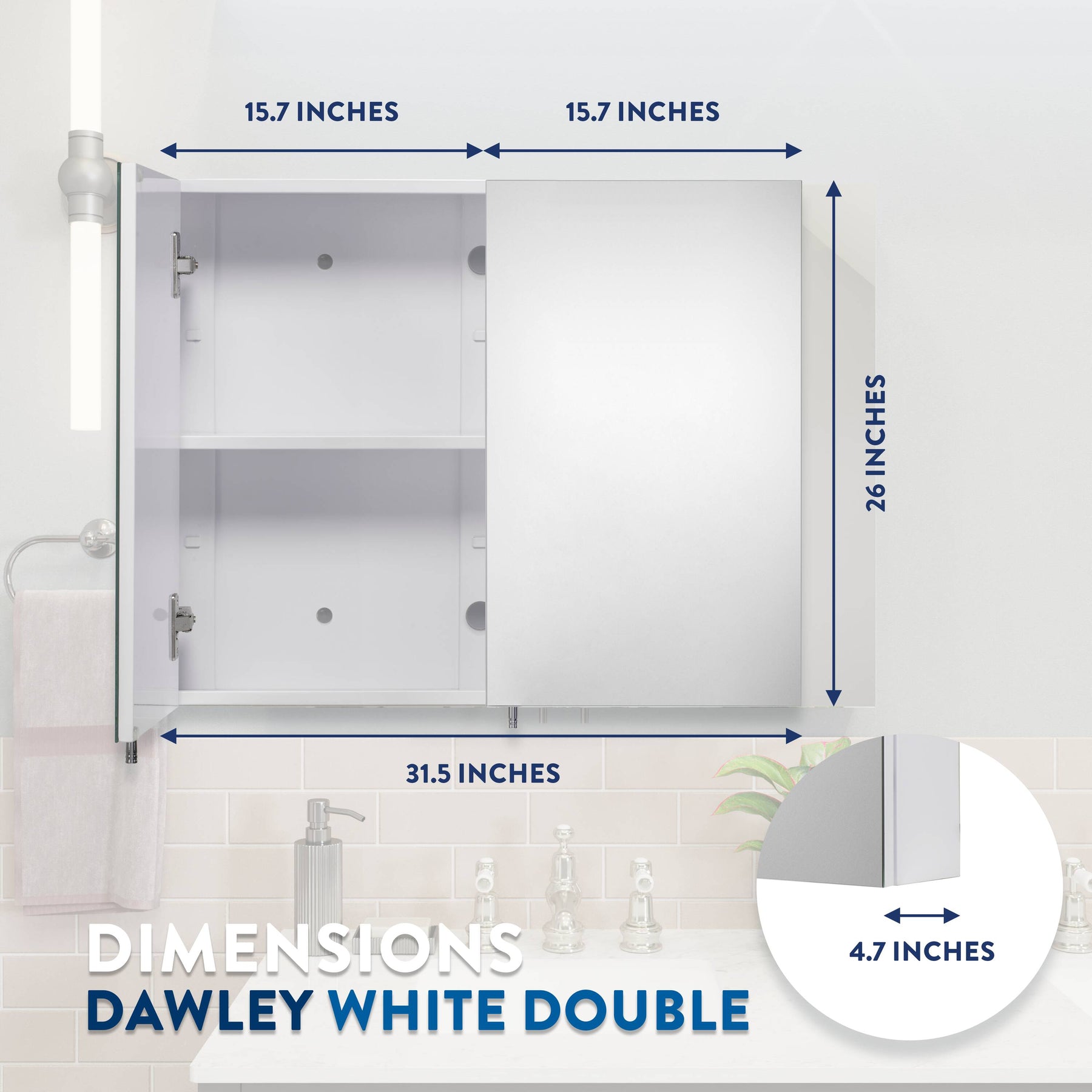 Croydex 31.5-in x 26-in Surface Mount White Mirrored Medicine Cabinet