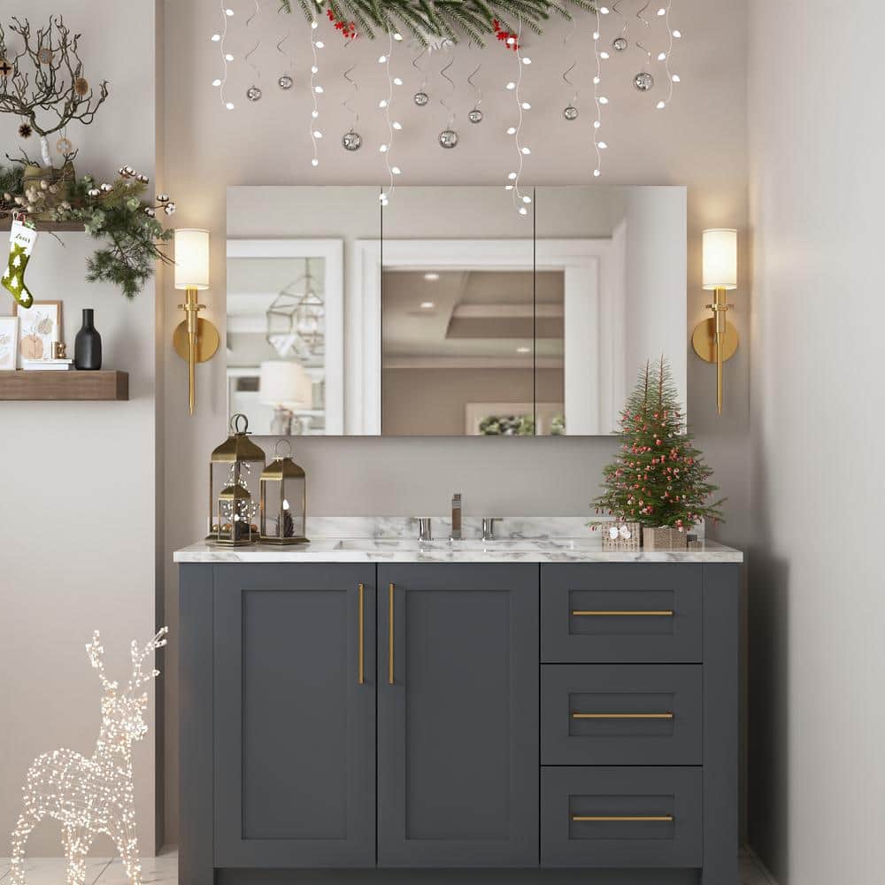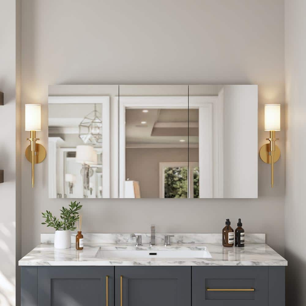 DEERVALLEY 48 in. W x 26 in. H Rectangular Aluminum Frameless Surface Mount Bathroom 3-Doors Medicine Cabinet with Mirror