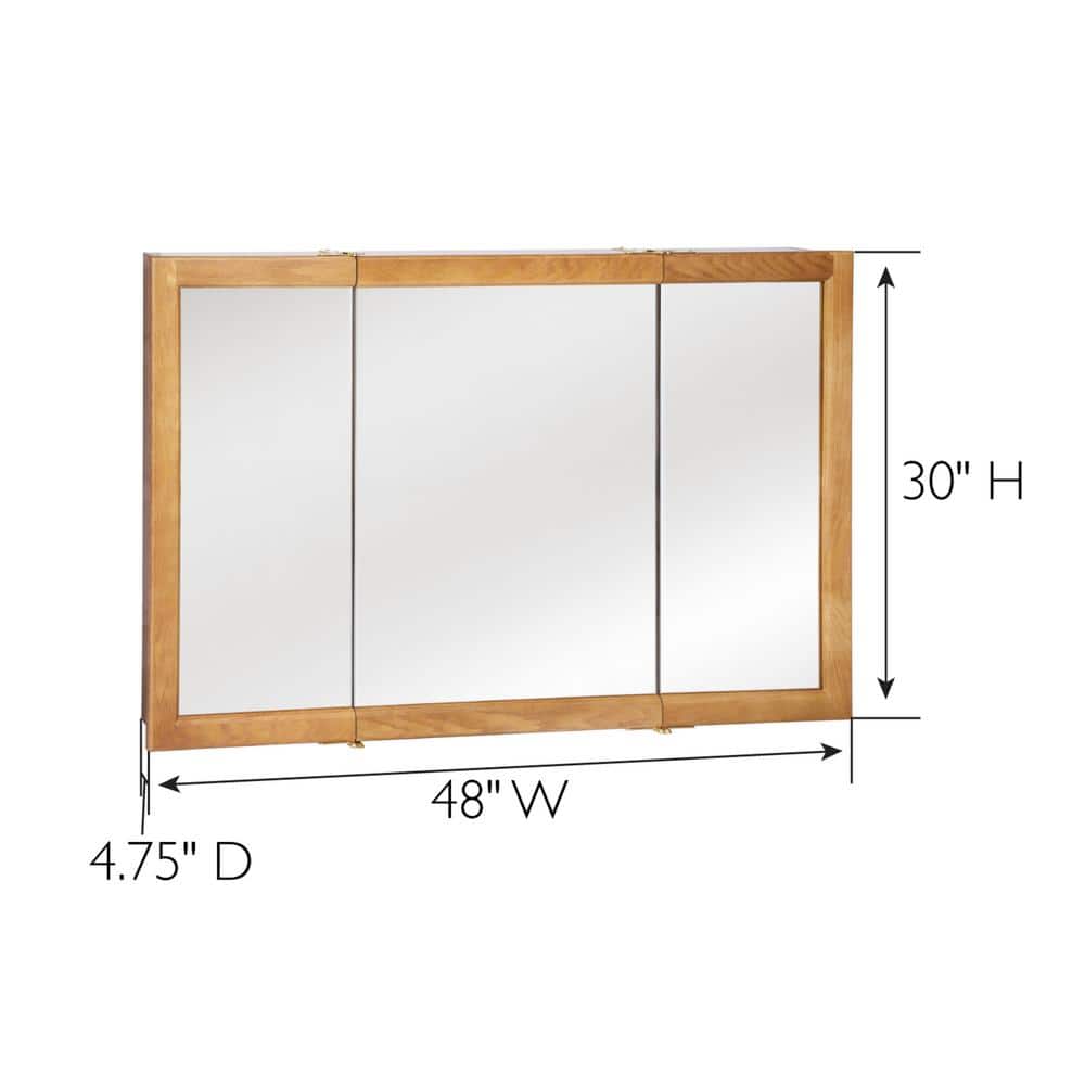 Design House Richland 48 in. x 30 in. 4-4/5 in. Surface-Mount Tri-View Bathroom Medicine Cabinet in Nutmeg Oak