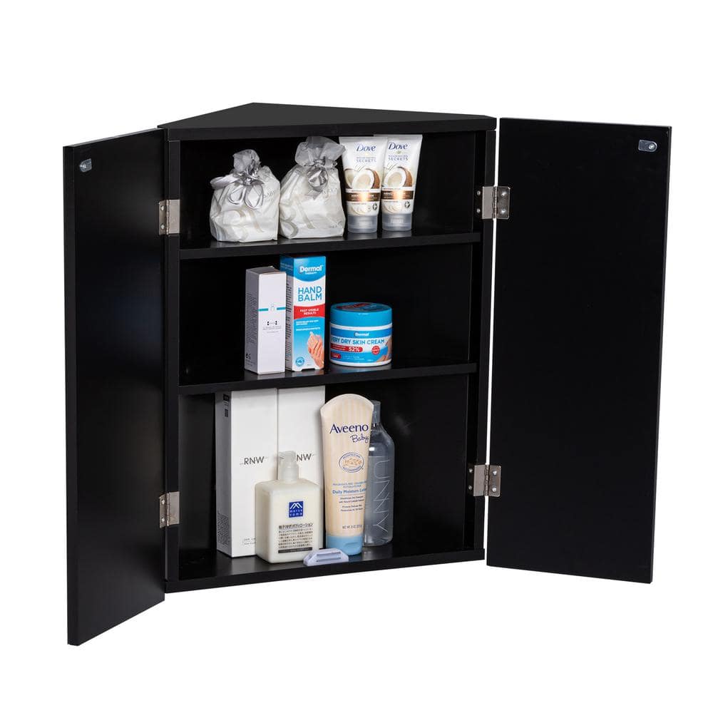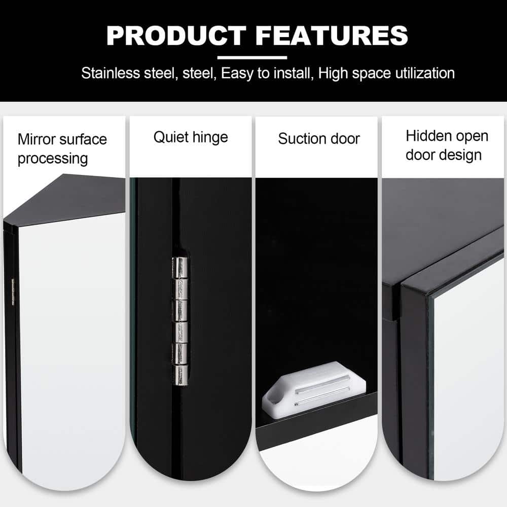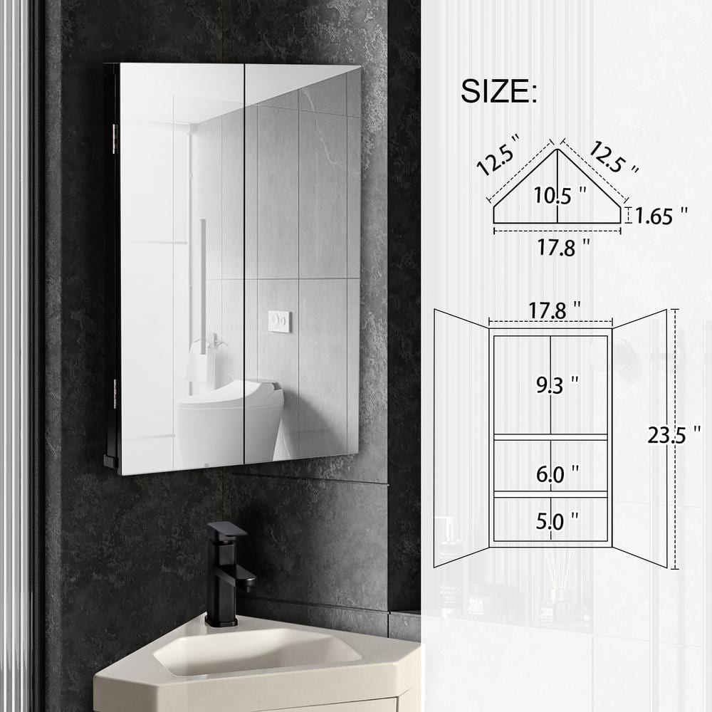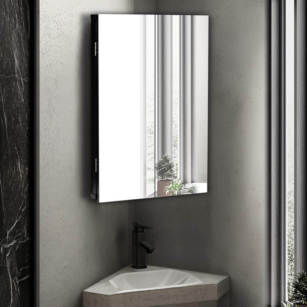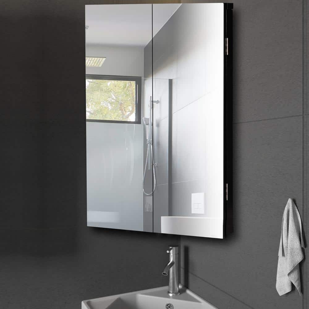 eclife 17.8 in. W x 23.5 in. H Rectangular Double Door Corner Surface Mount Frameless Medicine Cabinet with Mirror in Black