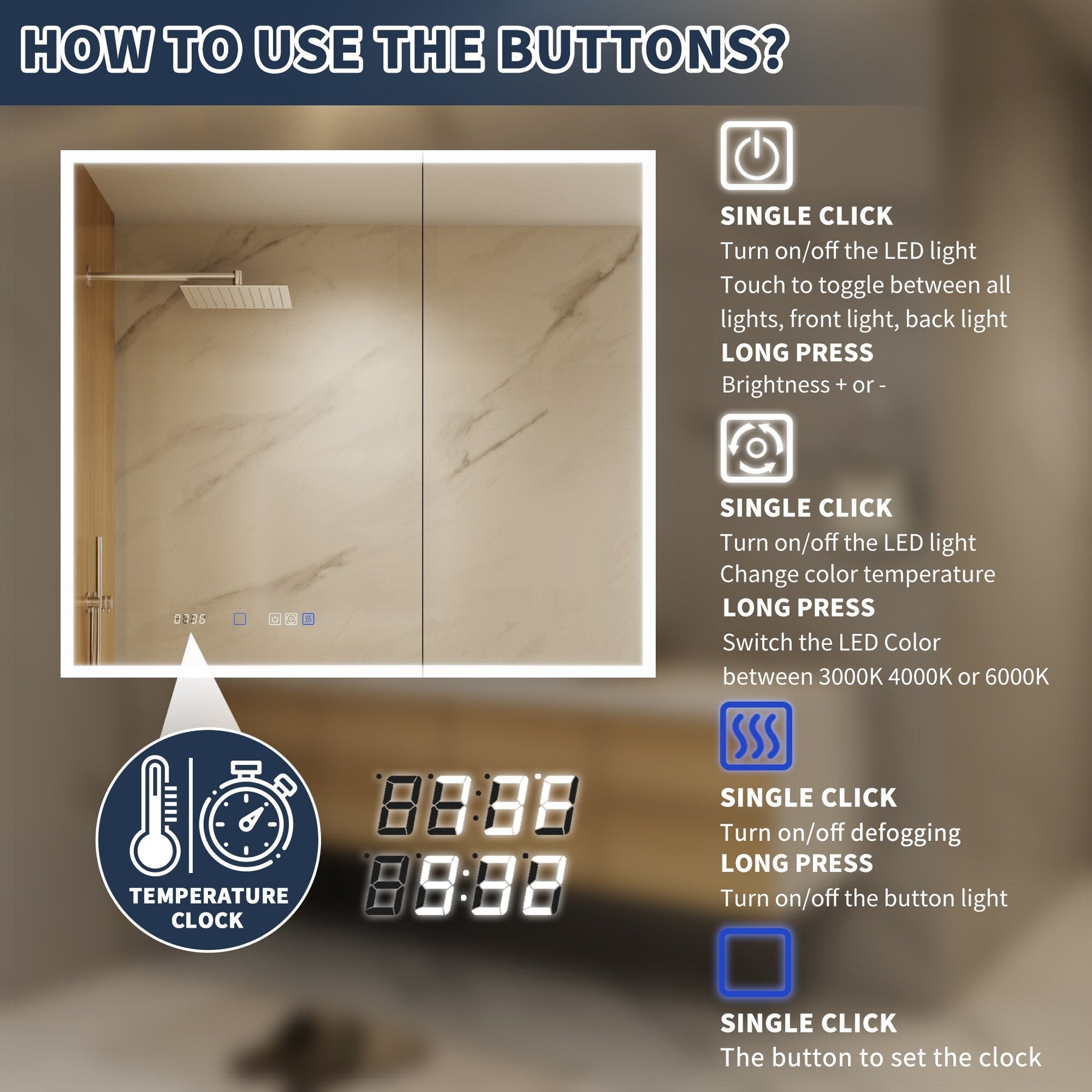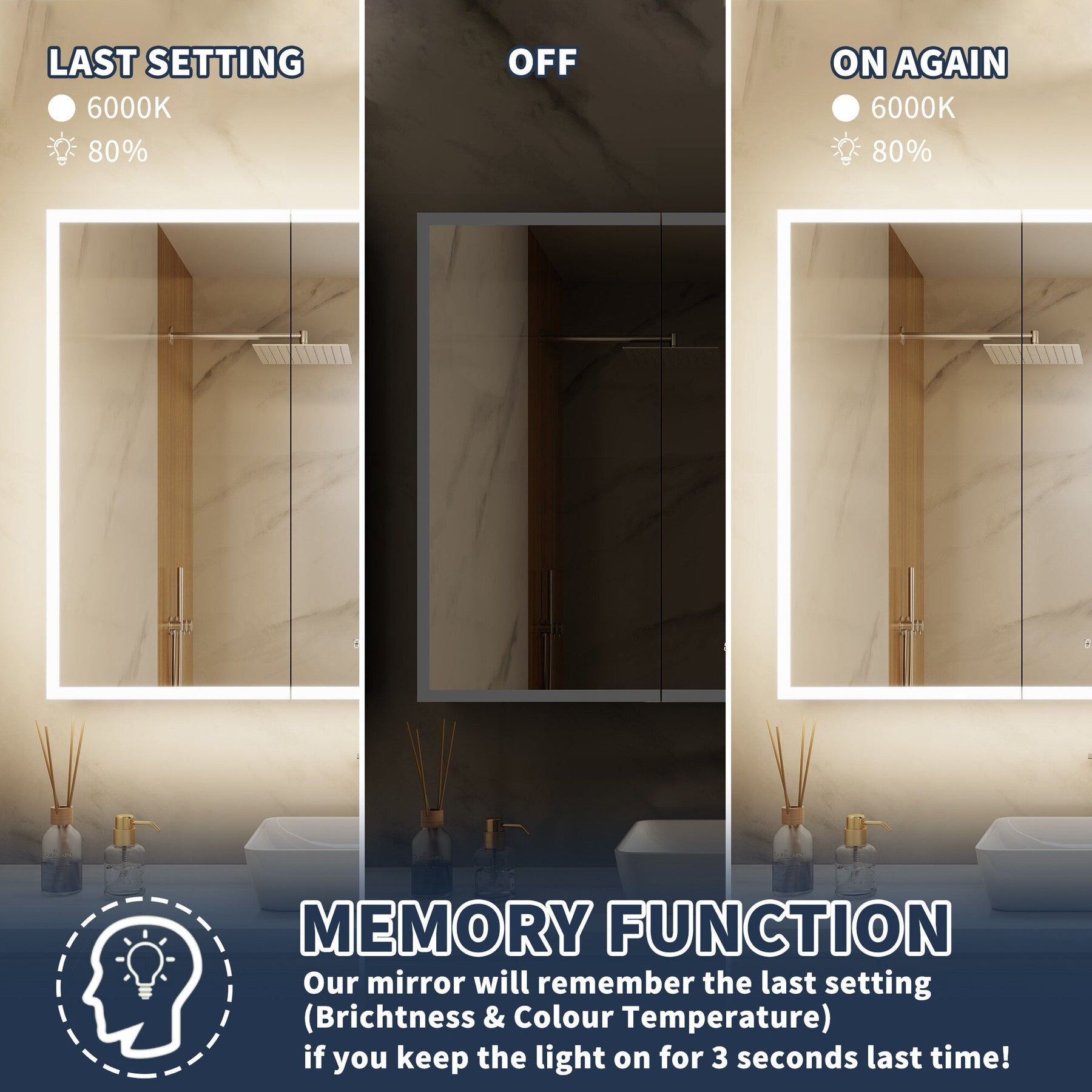 A: The anti-fog function activates automatically with the mirror's LED lights, preventing condensation from accumulating even in steamy bathroom conditions.