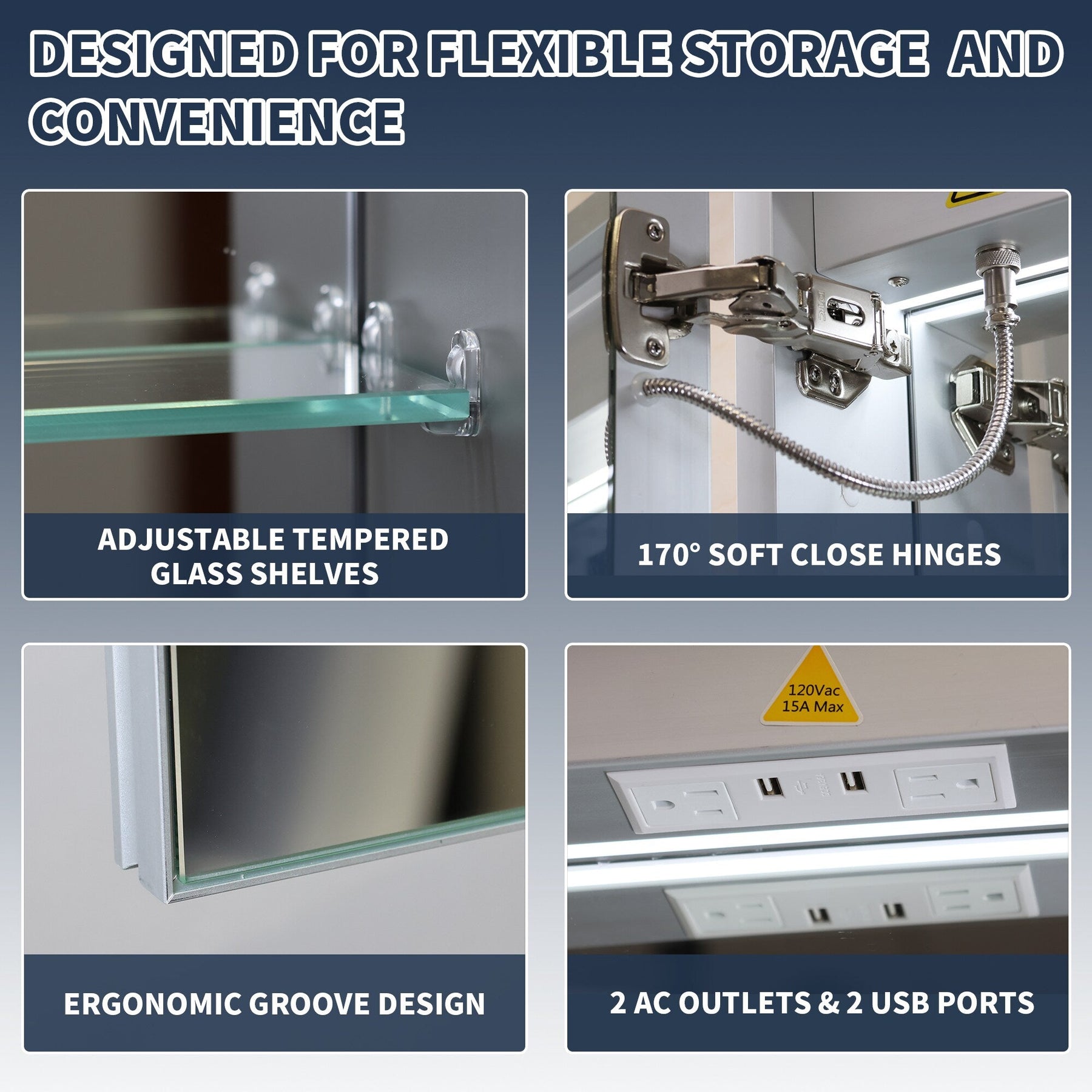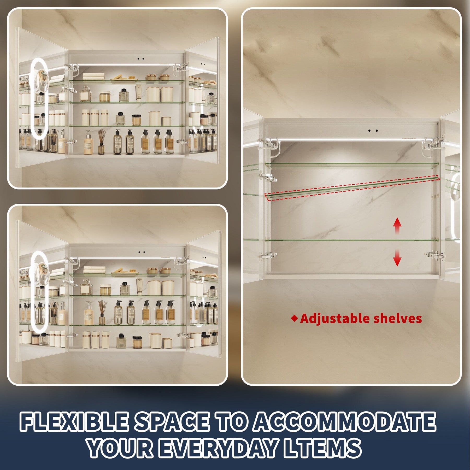 Transform your bathroom into a contemporary oasis with the ExBrite Fog-Free LED Medicine Cabinet. Featuring stepless dimming and an anti-fog function, it ensures perfect lighting and a clear view for your daily rituals. This elegant mirrored cabinet offers storage solutions with style, complete with USB ports and adjustable shelves.