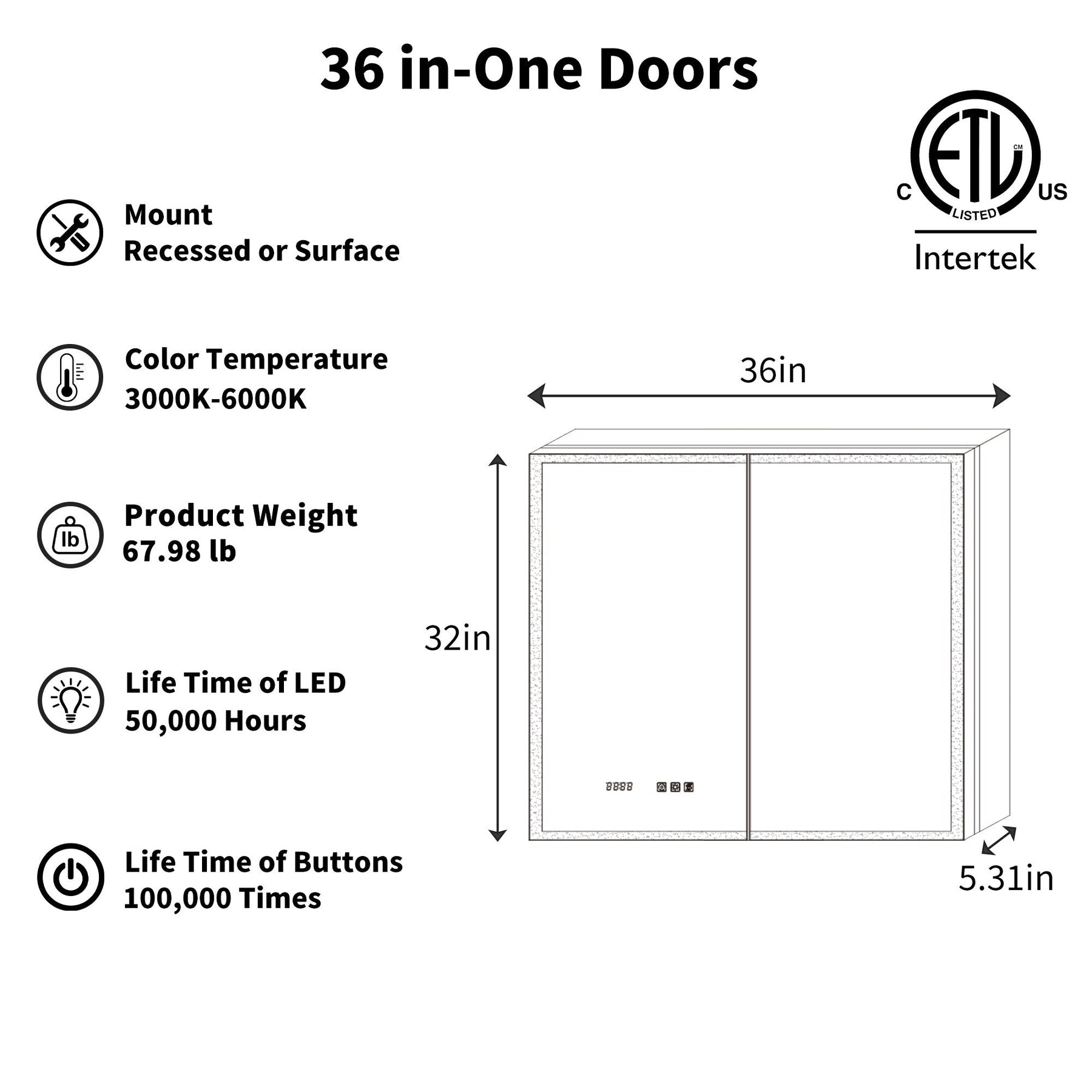 ExBrite 36-in x 32-in Lighted LED Fog Free Surface/Recessed Mount Silver Mirrored Soft Close Medicine Cabinet with Outlet