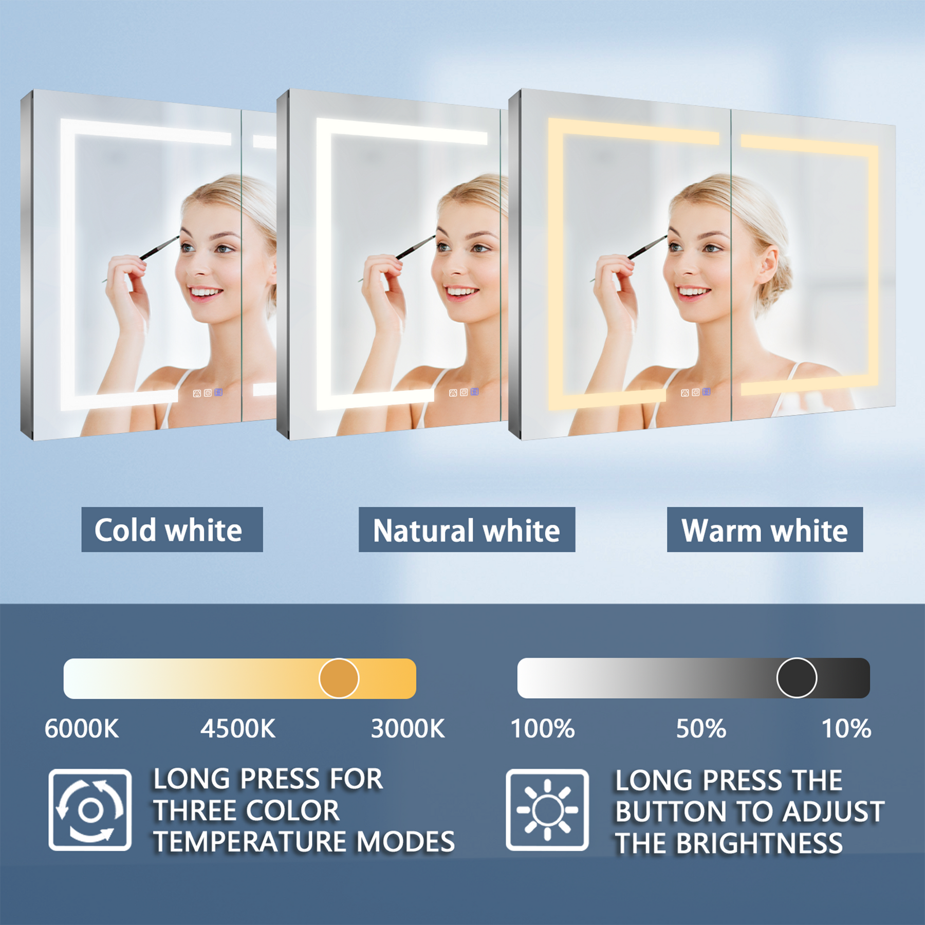 A: Yes, the cabinet features touch controls that allow you to adjust both brightness from 10% to 100% and color temperature between 3000K and 6000K.