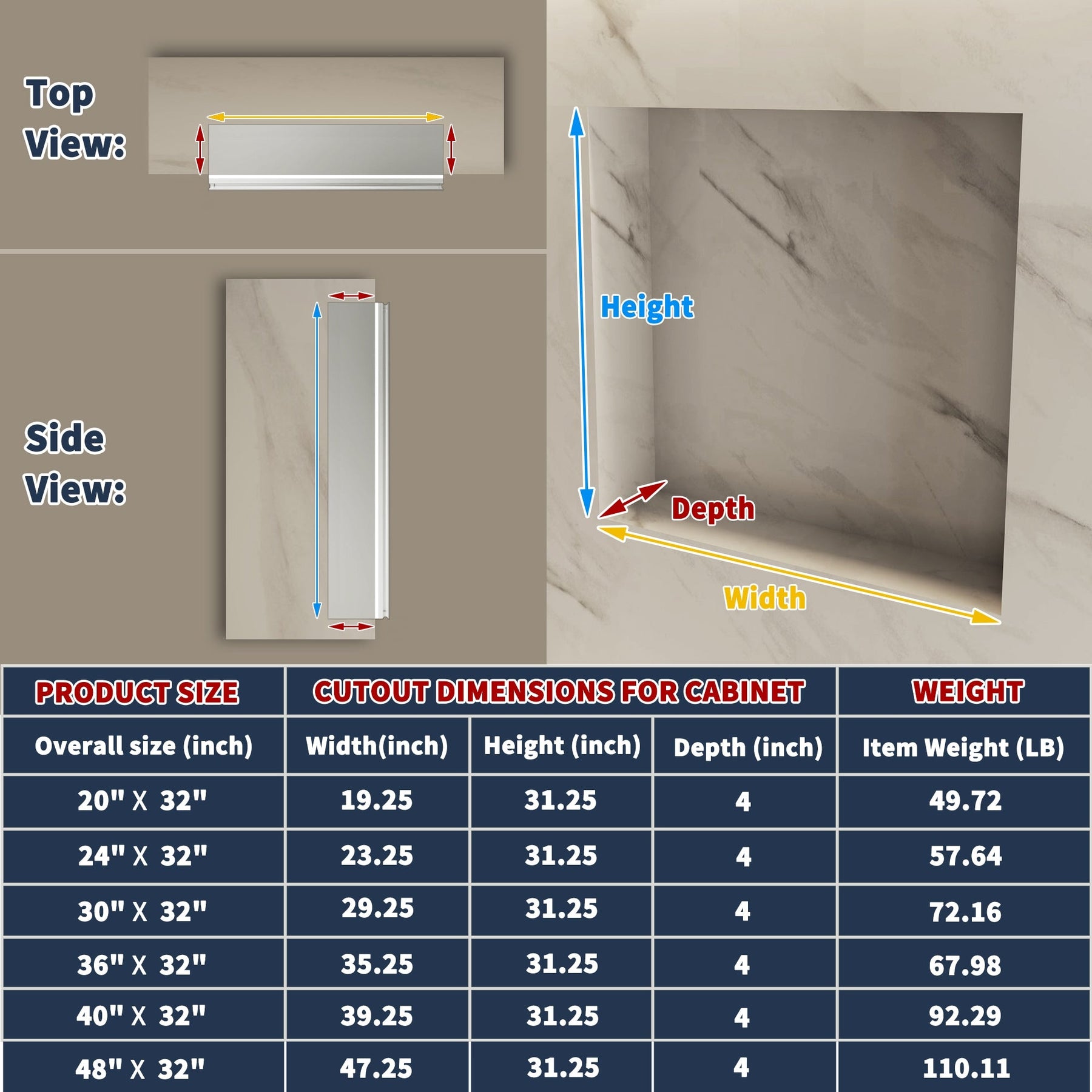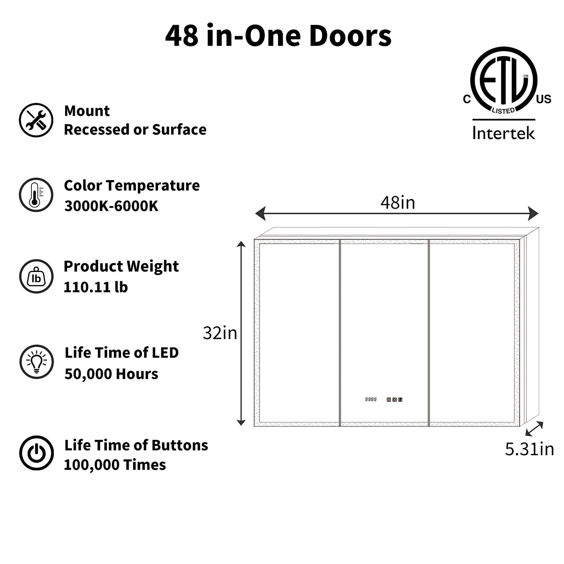 Transform your bathroom into a haven of modern elegance with the ExBrite 48x32 LED Medicine Cabinet. Featuring advanced fog-free technology and customizable lighting, this sleek unit ensures a pristine mirror surface at all times. With built-in outlets and USB ports, it effortlessly accommodates high-power appliances, making it a comprehensive solution for any home improvement project.