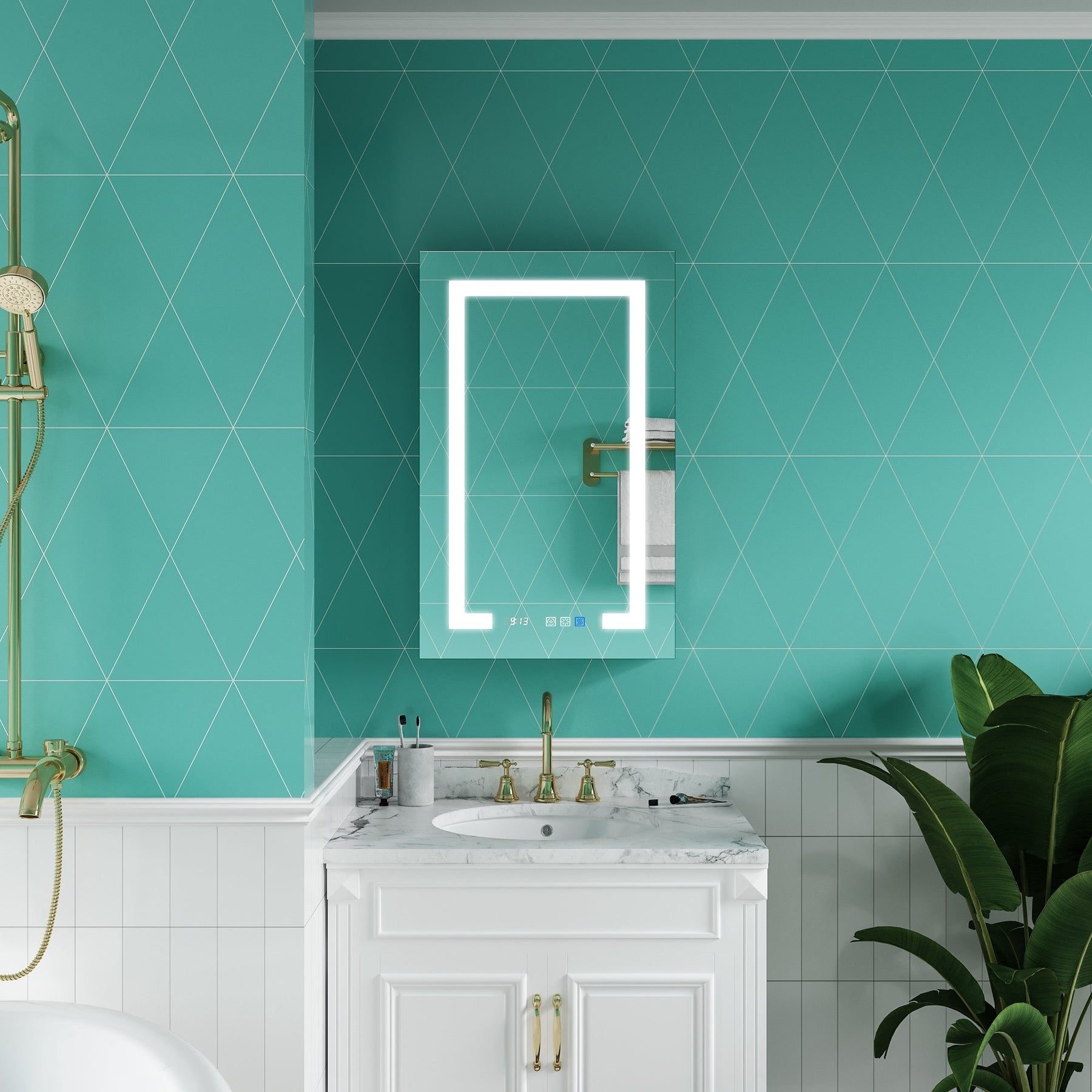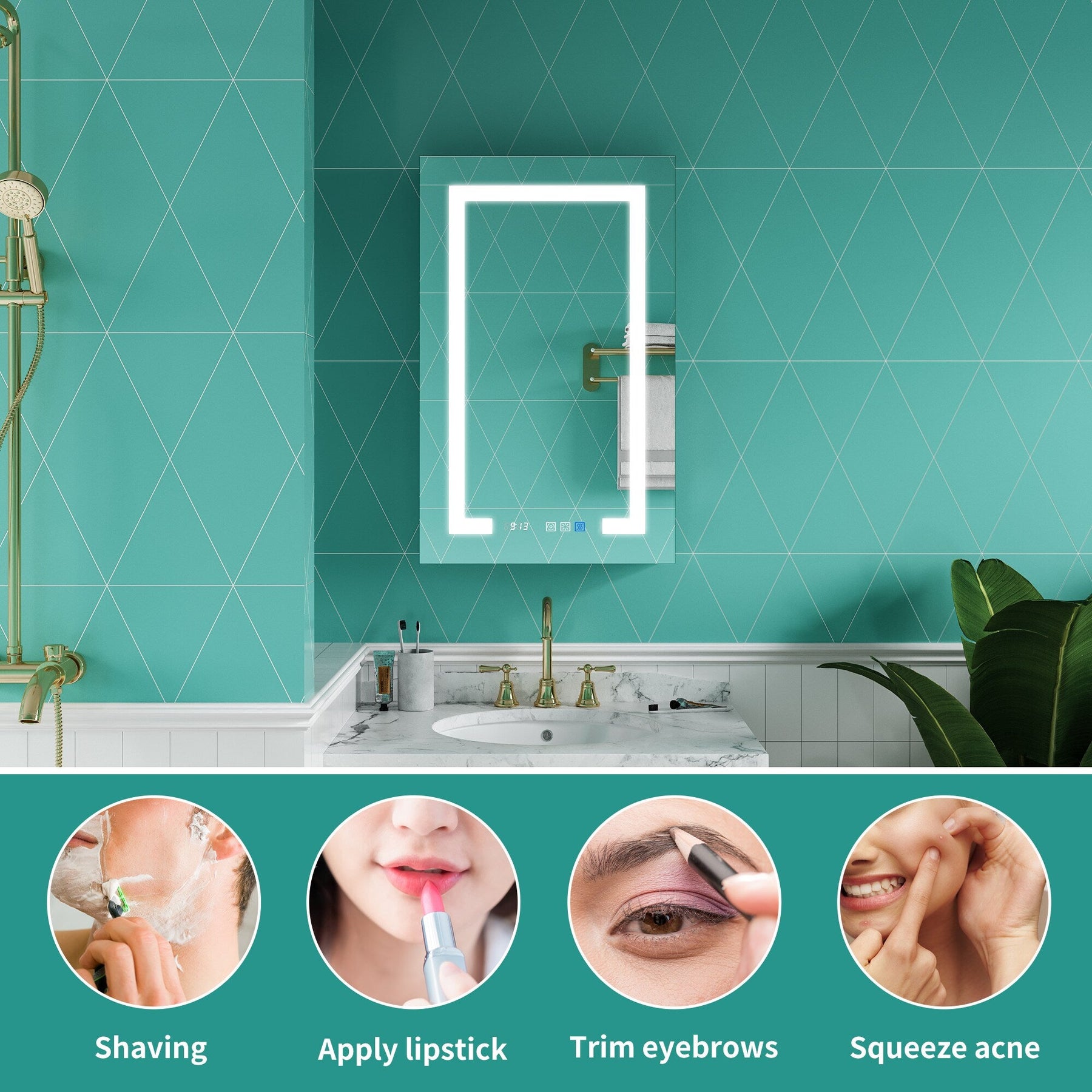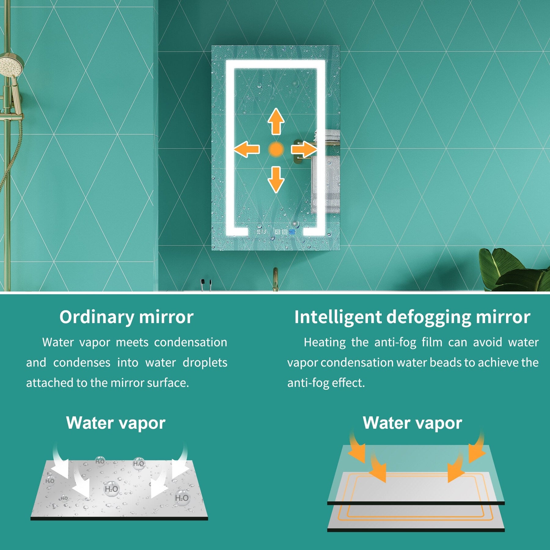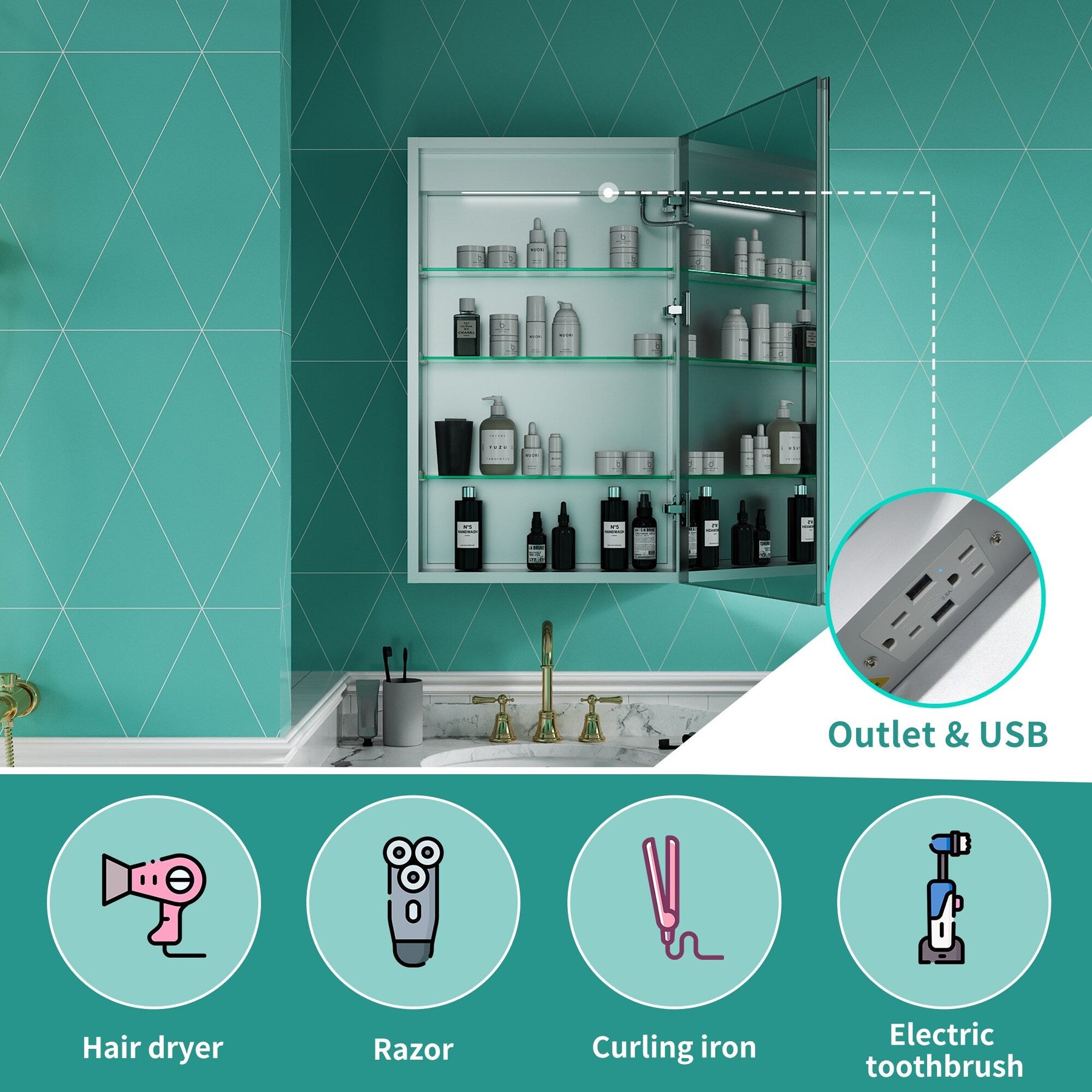 ExBrite Ethos 20-in x 32-in Lighted LED Fog Free Surface/Recessed Mount Silver Mirrored Soft Close Medicine Cabinet with Outlet
