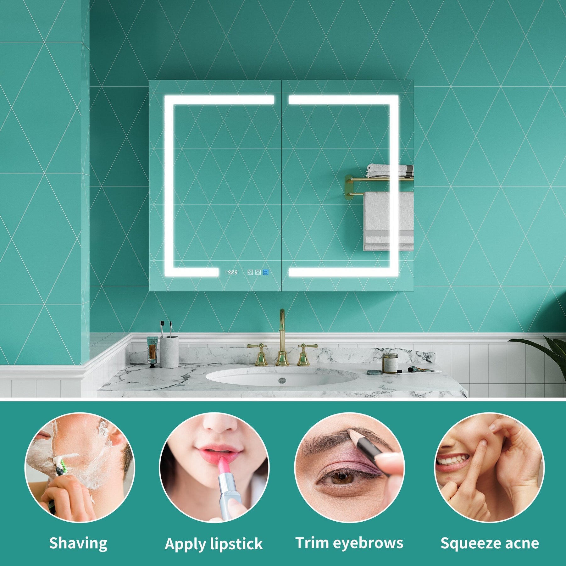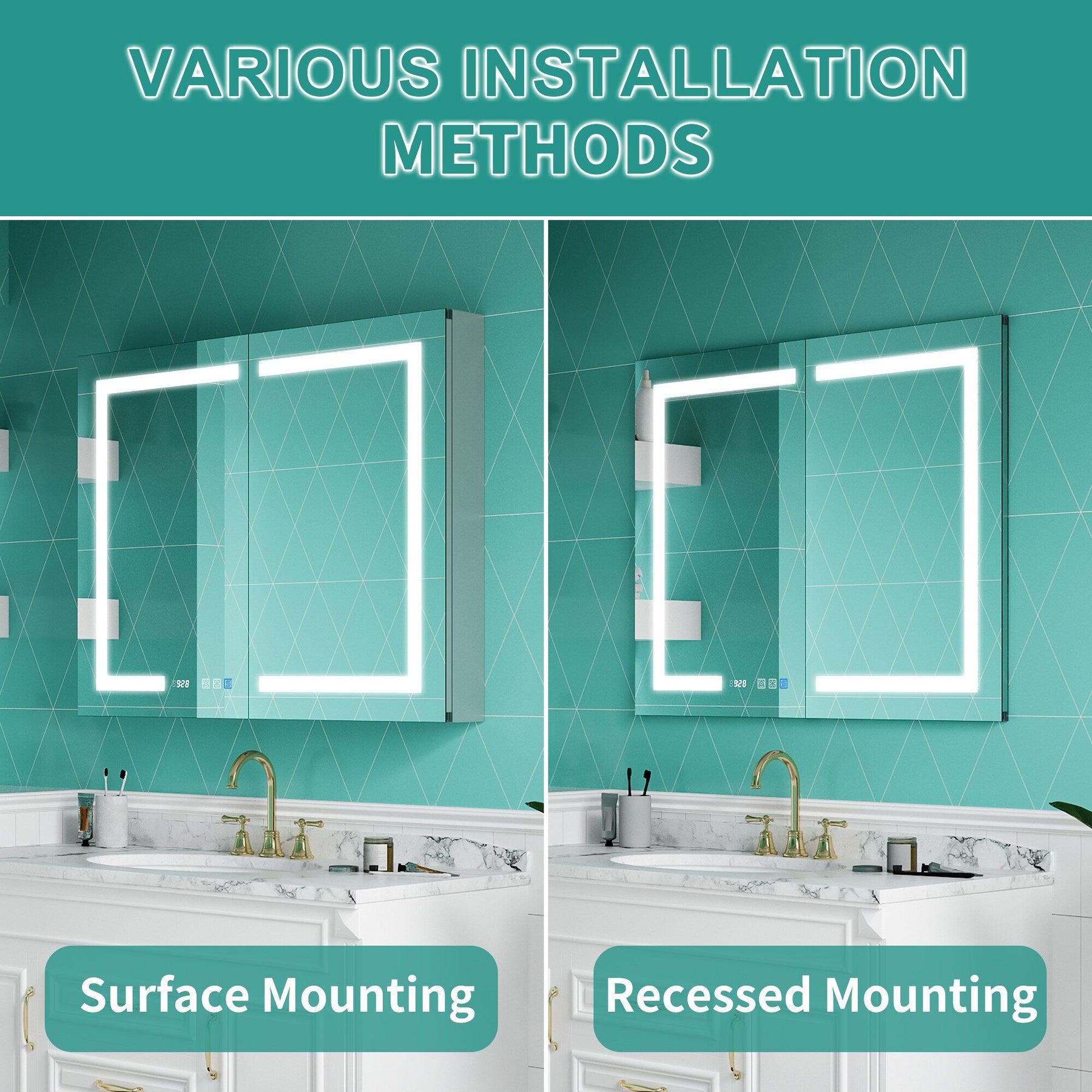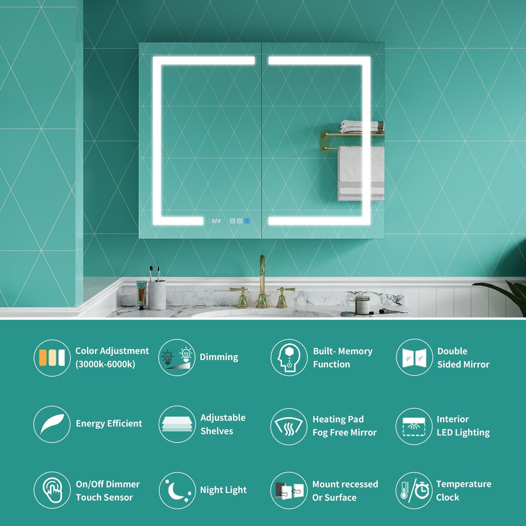 • Digital Display: Convenient clock and temperature display integrated into the cabinet mirror.