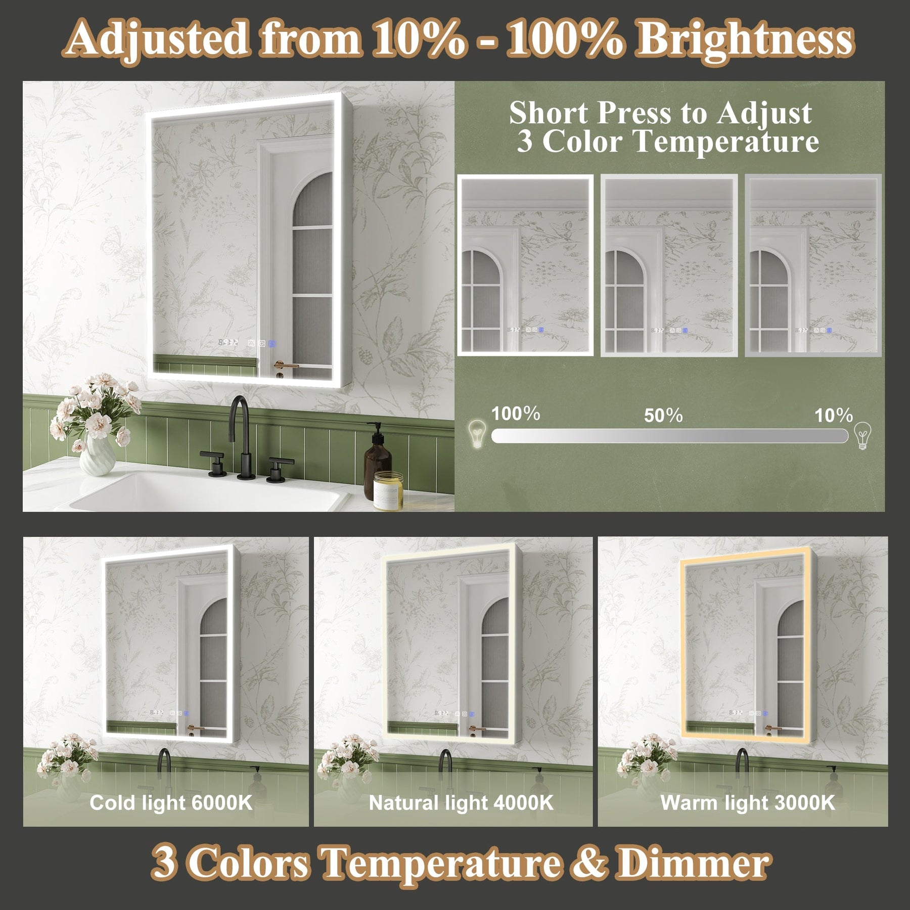 The ExBrite Luvia LED Medicine Cabinet is a modern masterpiece designed for ultimate convenience and sophistication in your bathroom. With its fog-free, customizable LED lighting and smart features, you'll enjoy a streamlined morning routine while adding a touch of elegance to your space.