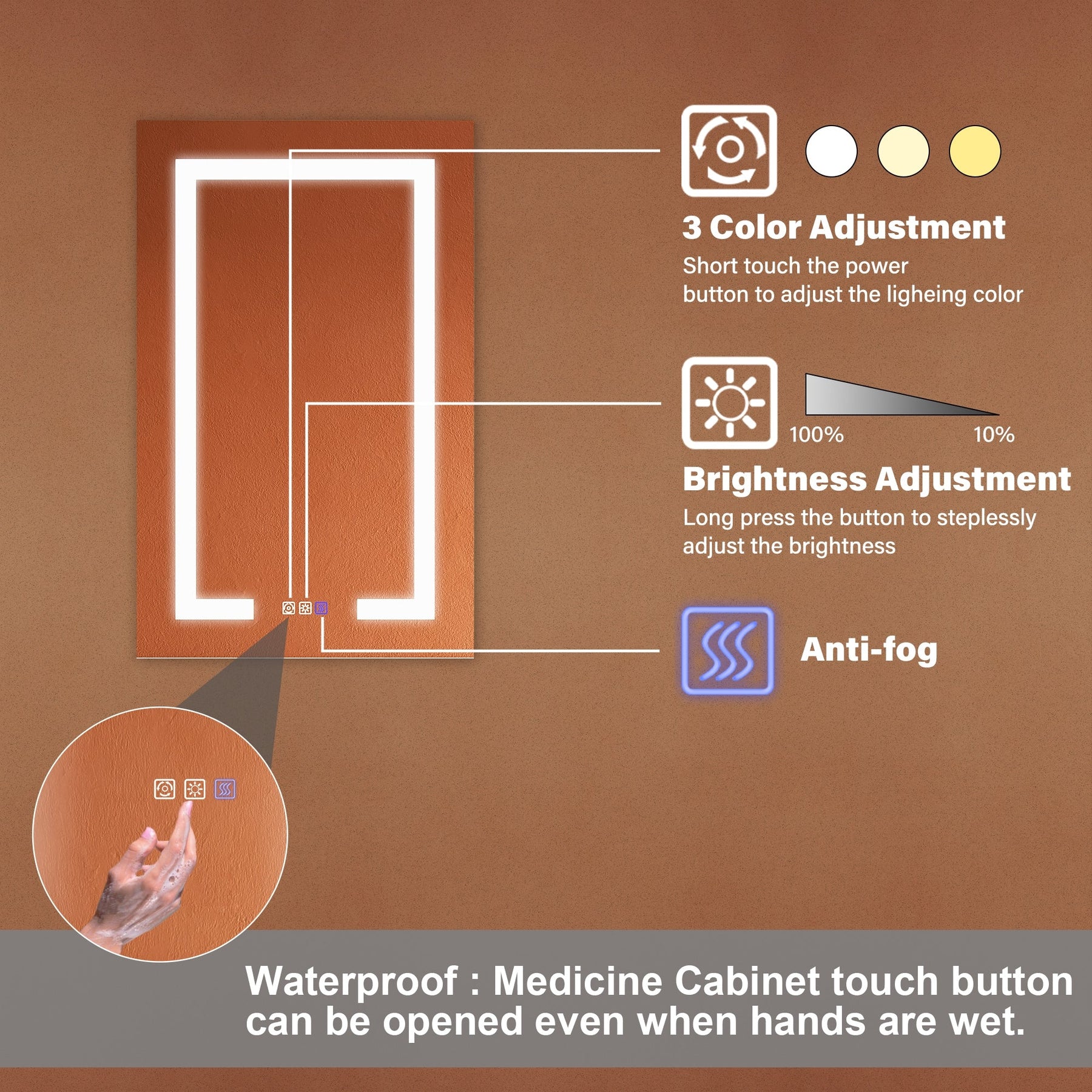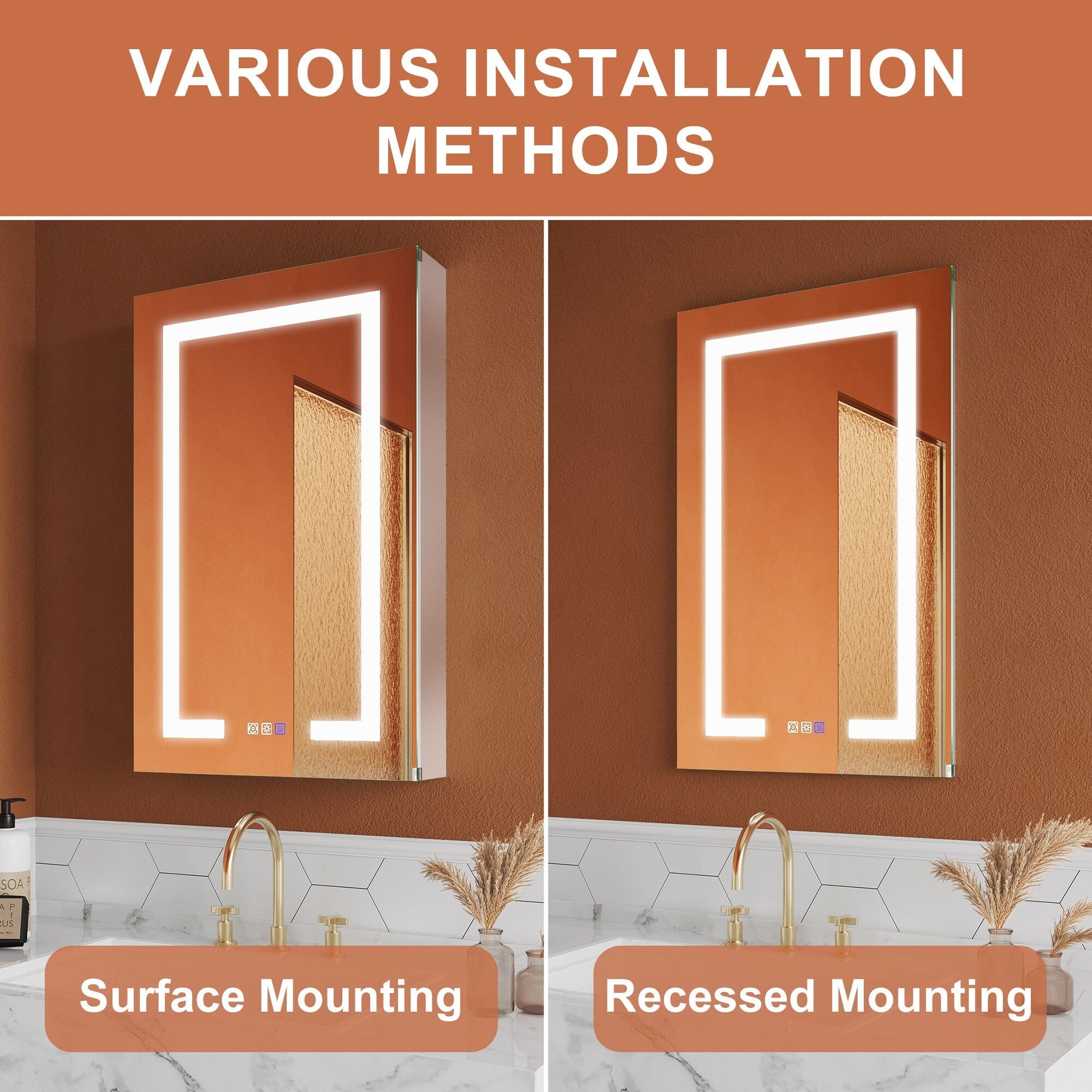 The ExBrite Opale LED Lighted Fog-Free Medicine Cabinet combines modern design with functionality, offering both surface and recessed mounting options. Its adjustable LED lighting and anti-fog technology ensure a clear and illuminated space for grooming, while soft-close hinges and ample storage provide seamless convenience.