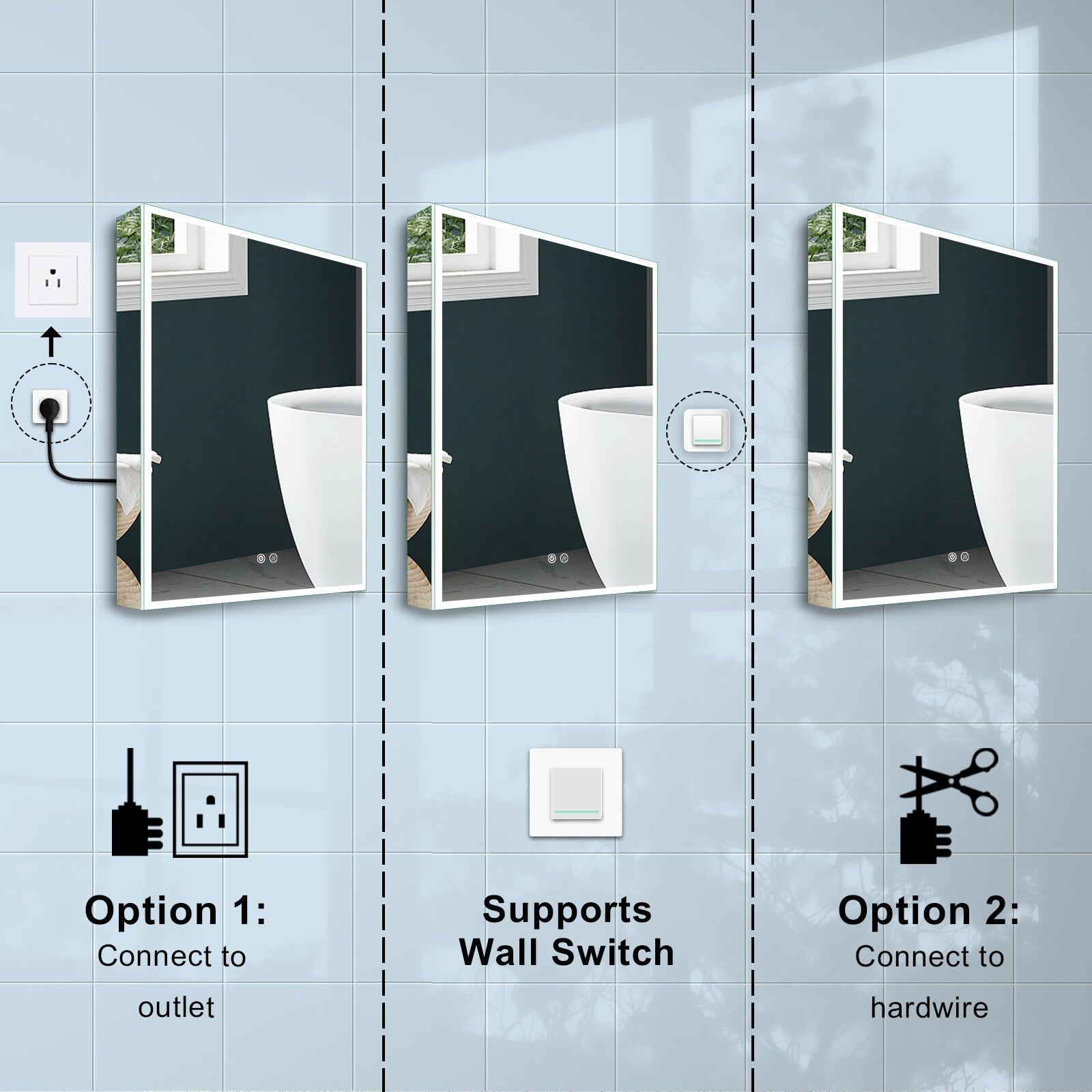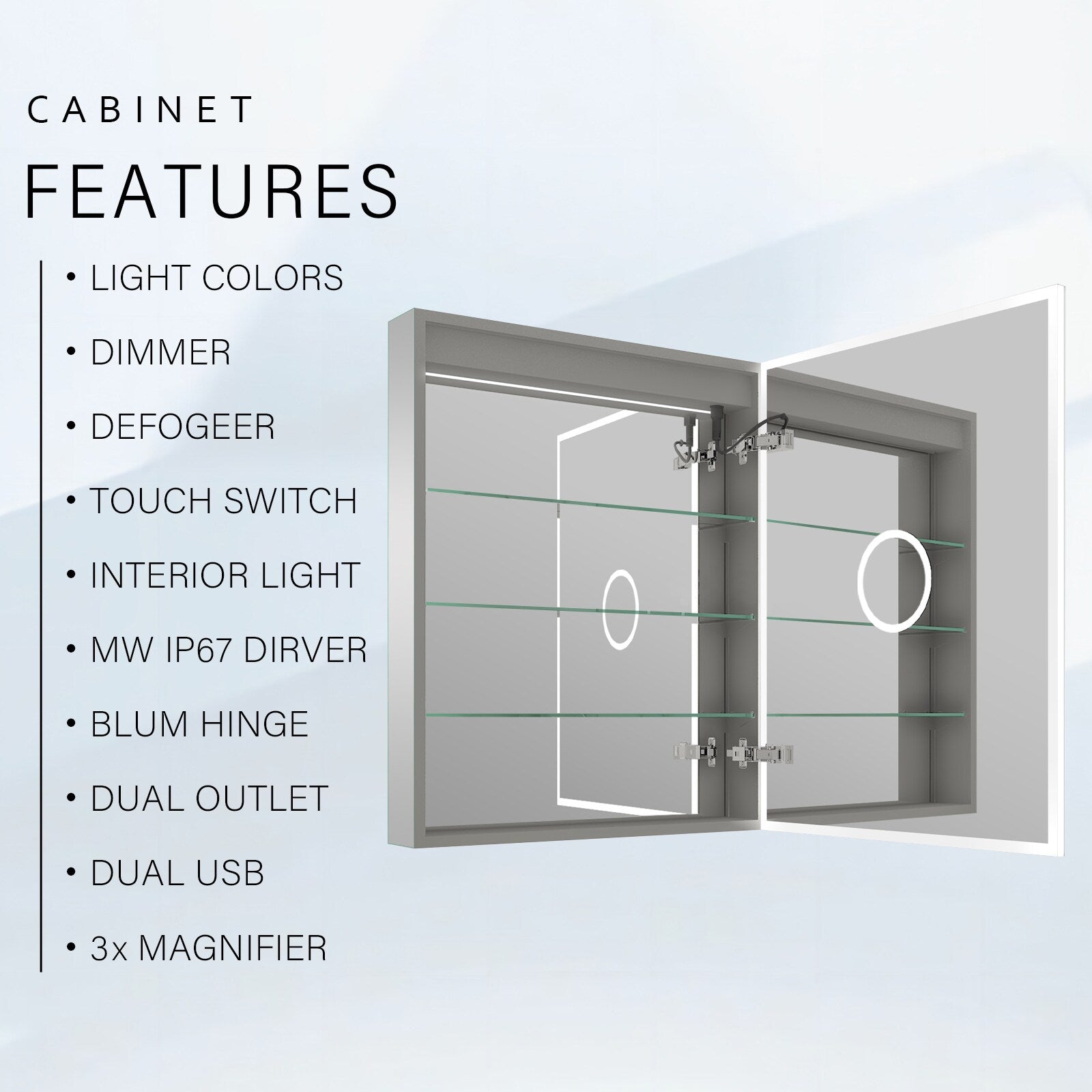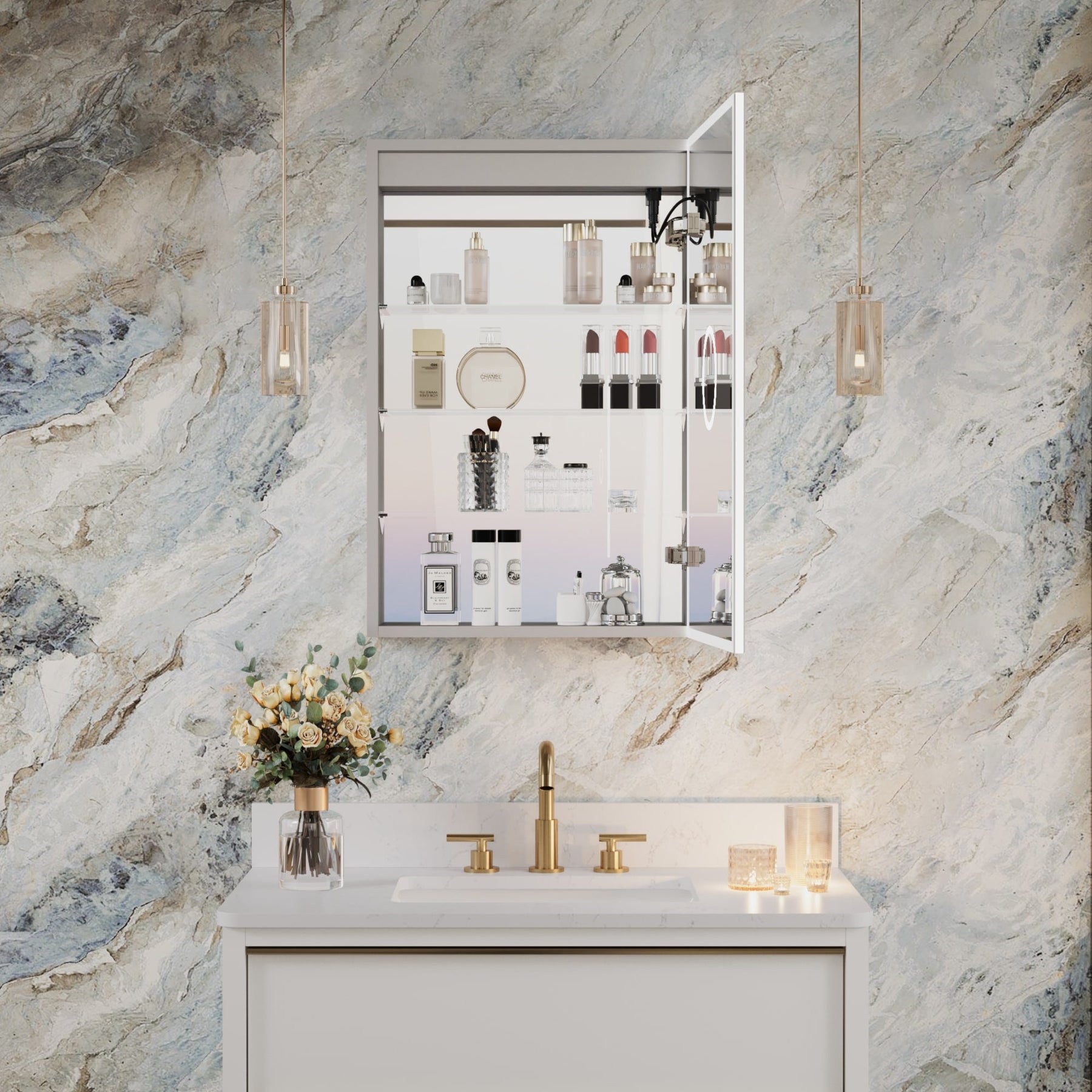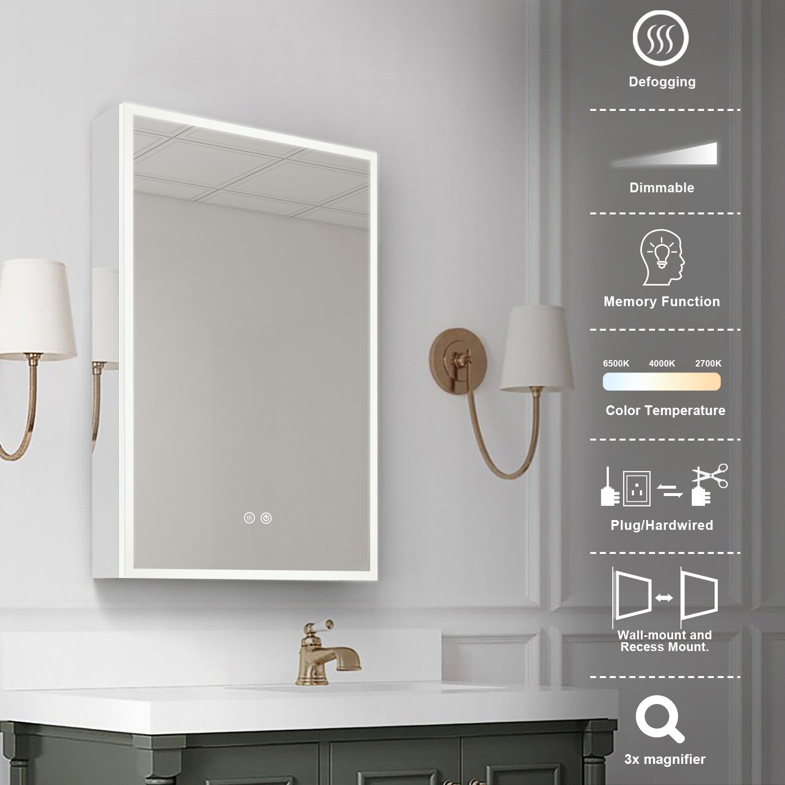LED Fog Free Medicine Cabinet with Outlet
