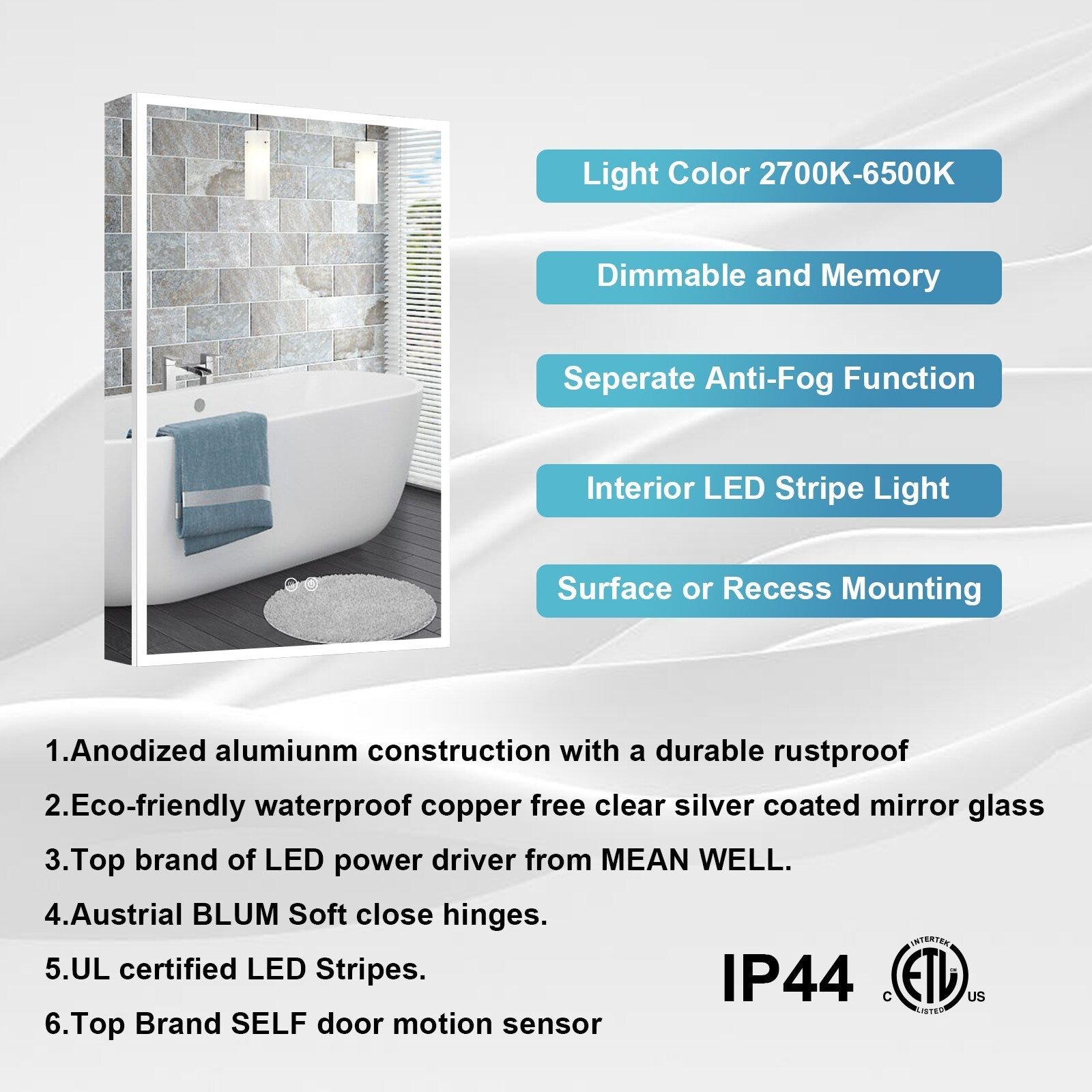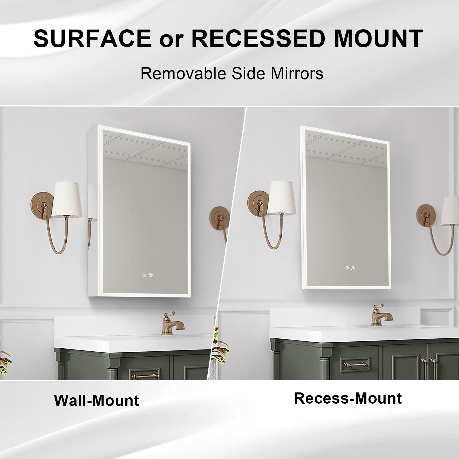 A: Yes, this medicine cabinet can be both surface-mounted and recessed for versatile installation.