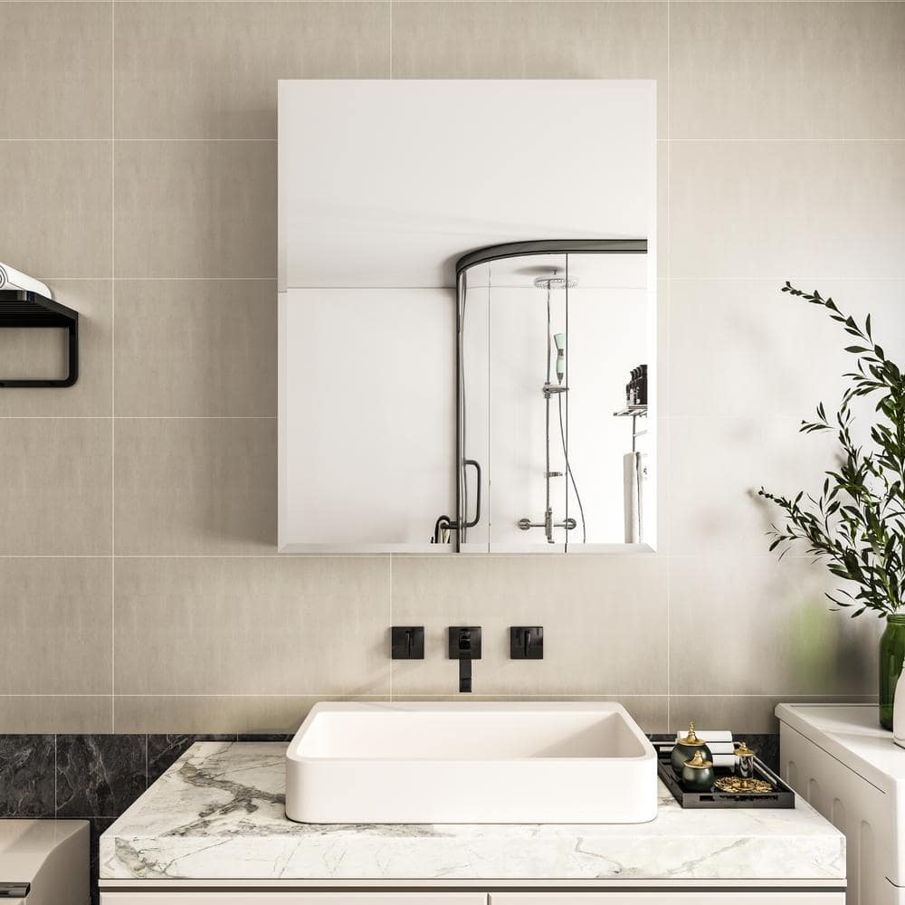 Elevate your bathroom's aesthetic with the FORCLOVER Silver Aluminum Medicine Cabinet, a seamless blend of function and design. Its gleaming, copper-free silver mirror not only reflects your personal style but also expands the sense of space with its sophisticated sheen. Perfectly accompany this piece with minimalist accessories for a streamlined look, or contrast with vibrant towels and textiles for a pop of color. Both timeless and essential, this medicine cabinet transforms daily routines into luxurious experiences.