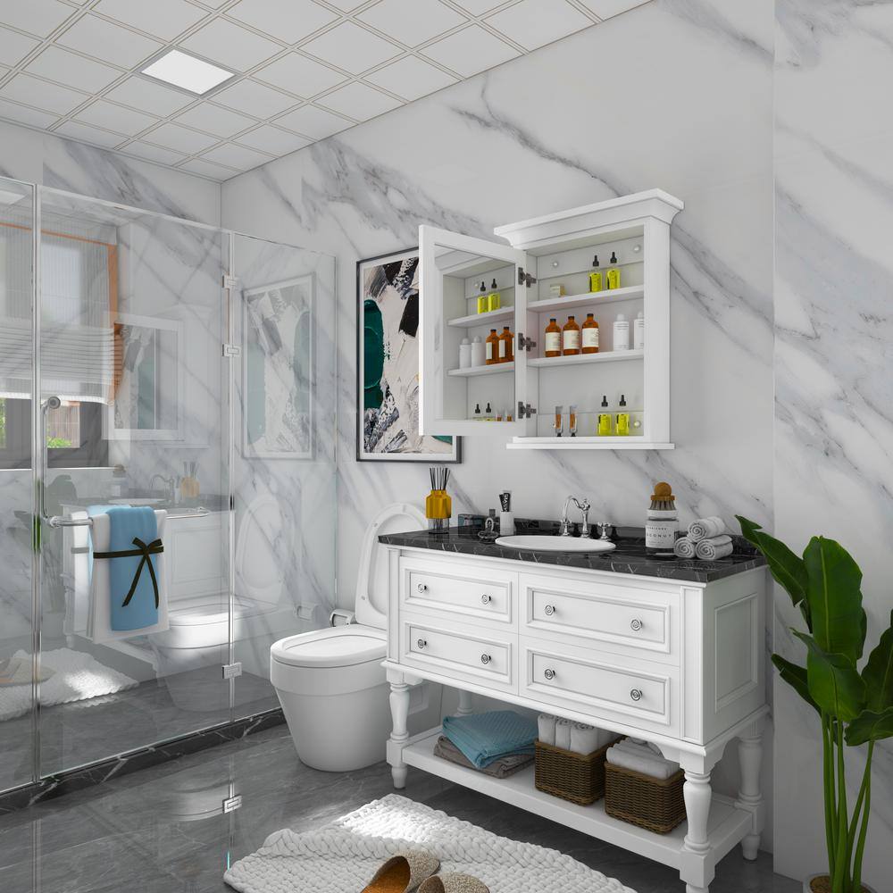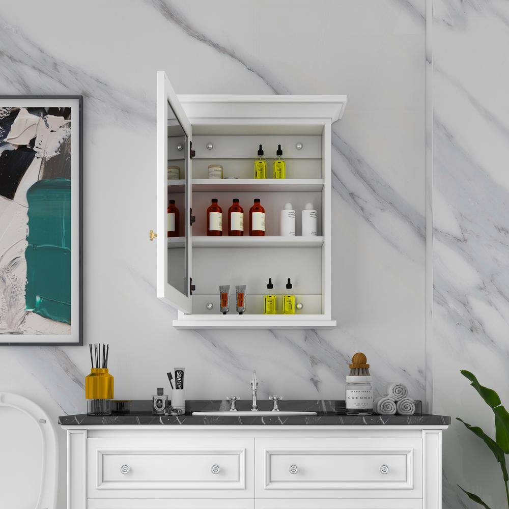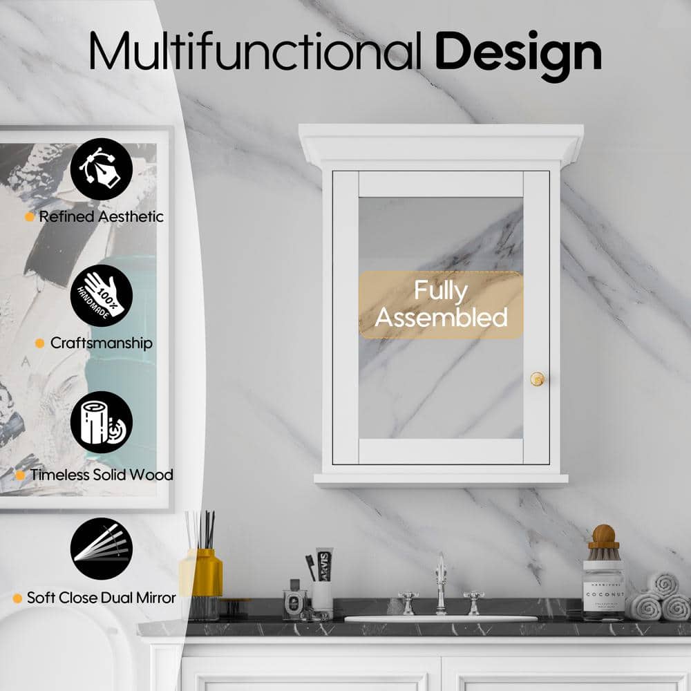 Elevate your bathroom's style and organization with the FORCLOVER Solid Wood Medicine Cabinet. Featuring exquisite craftmanship, this cabinet combines a timeless design with modern convenience, including a mirrored door and soft-close hinges. With ample storage and a surface mount design, it seamlessly fits into any bathroom decor.