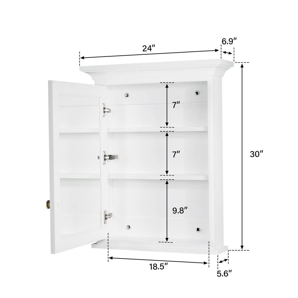 FORCLOVER 24 in. W x 30 in. H Rectangular Surface Mount Solid Wood Medicine Cabinet with Mirror