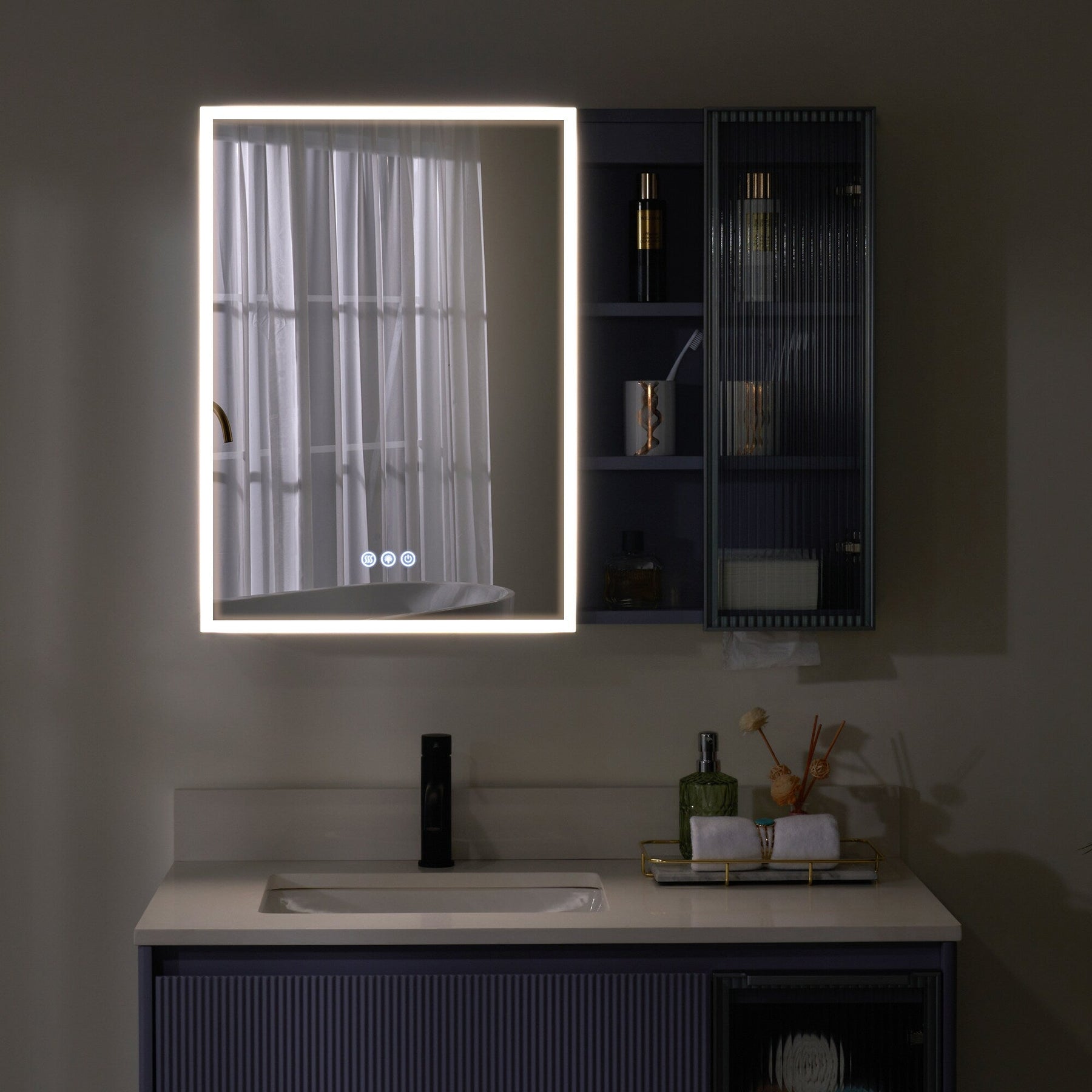 Forclover 36-in x 28-in Lighted LED Fog Free Surface Mount Lavender Mirrored Soft Close Medicine Cabinet with Outlet