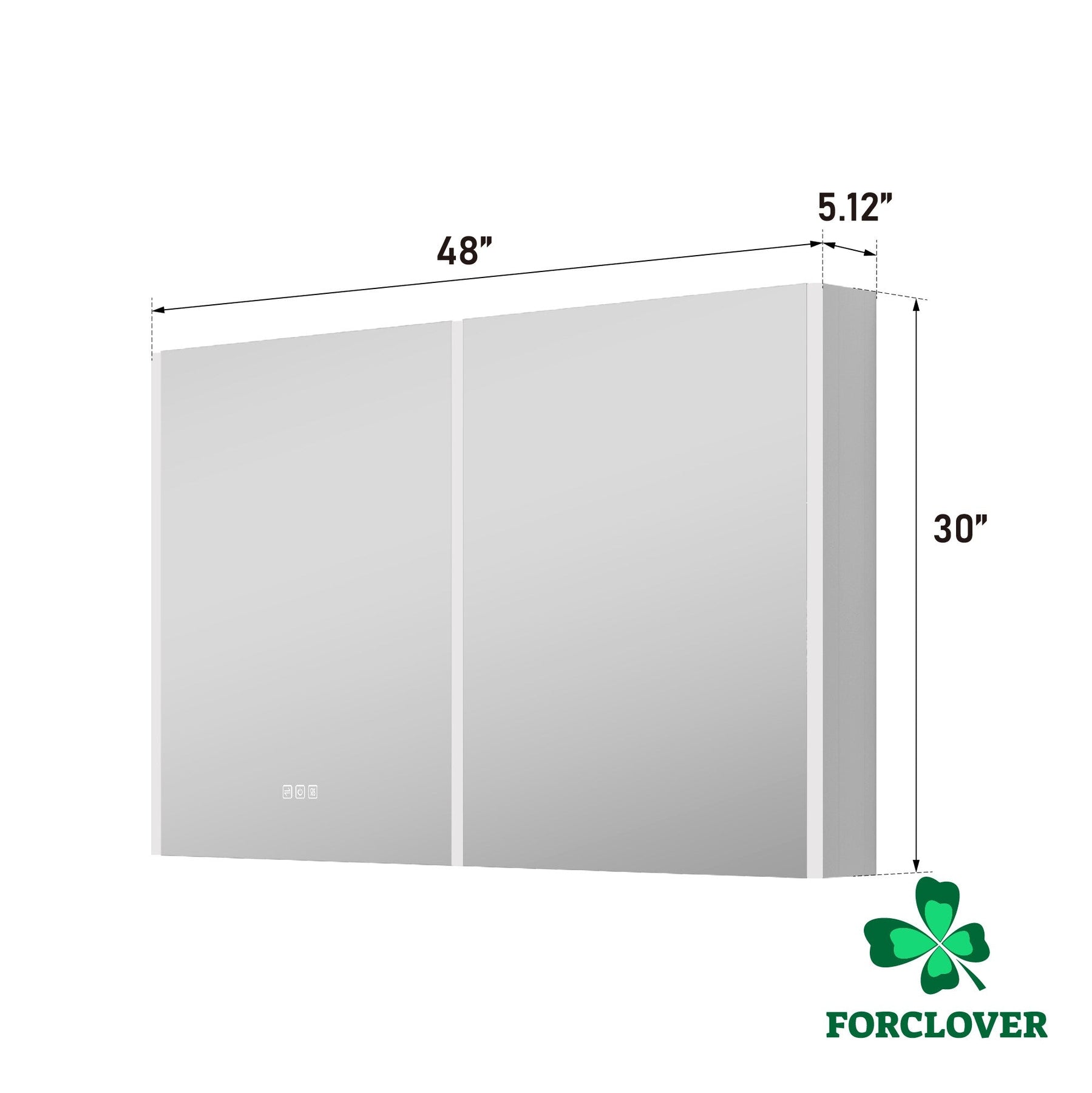 Forclover 48-in x 30-in Lighted LED Fog Free Surface Mount Aluminum Mirrored Soft Close Medicine Cabinet with Outlet