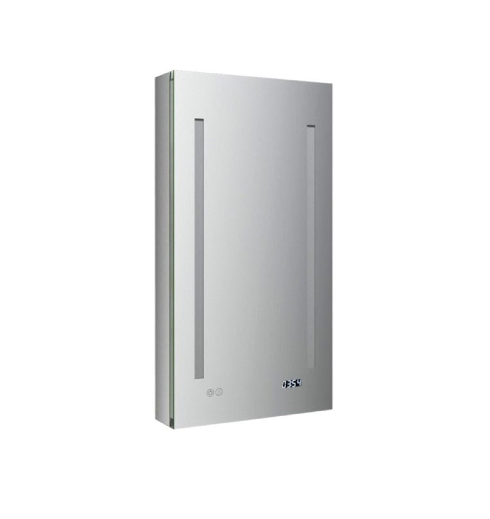 Fresca Tiempo 15-in x 30-in Lighted LED Fog Free Surface/Recessed Mount LED Mirror Mirrored Soft Close Medicine Cabinet with Outlet