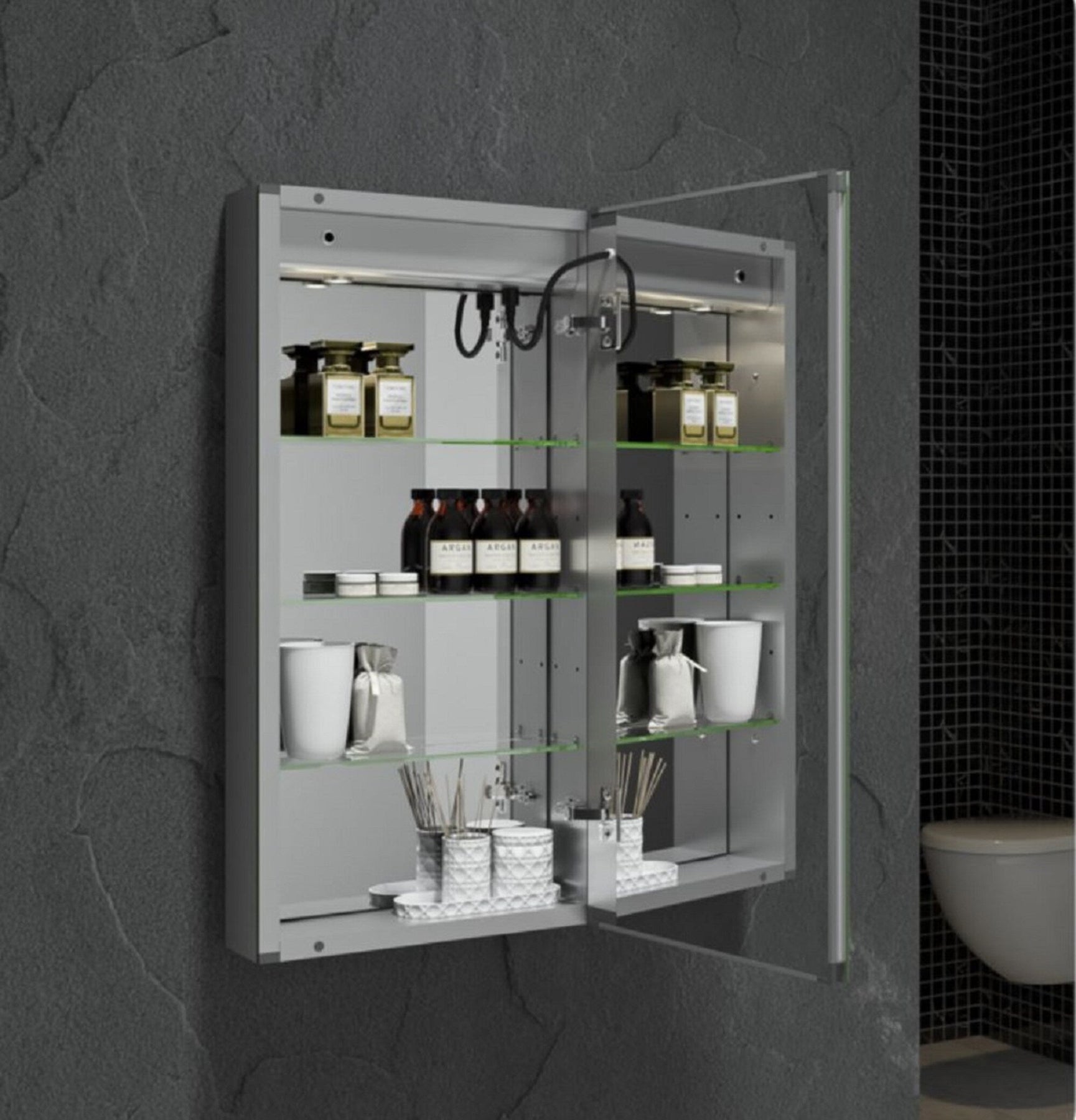 Elevate your bathroom with the Fresca Tiempo Lighted Medicine Cabinet, featuring a fog-free mirrored surface, integrated LED lighting, and USB charging outlets. Thoughtfully designed for versatile installation options, this cabinet brings modern functionality and stylish elegance to any space.