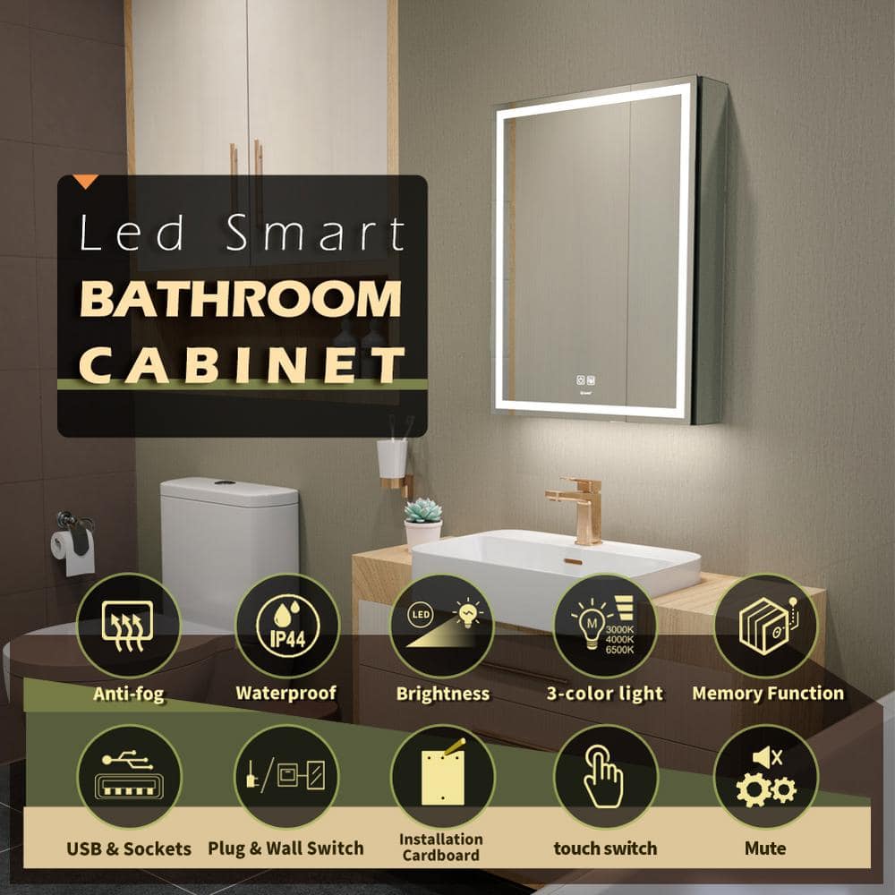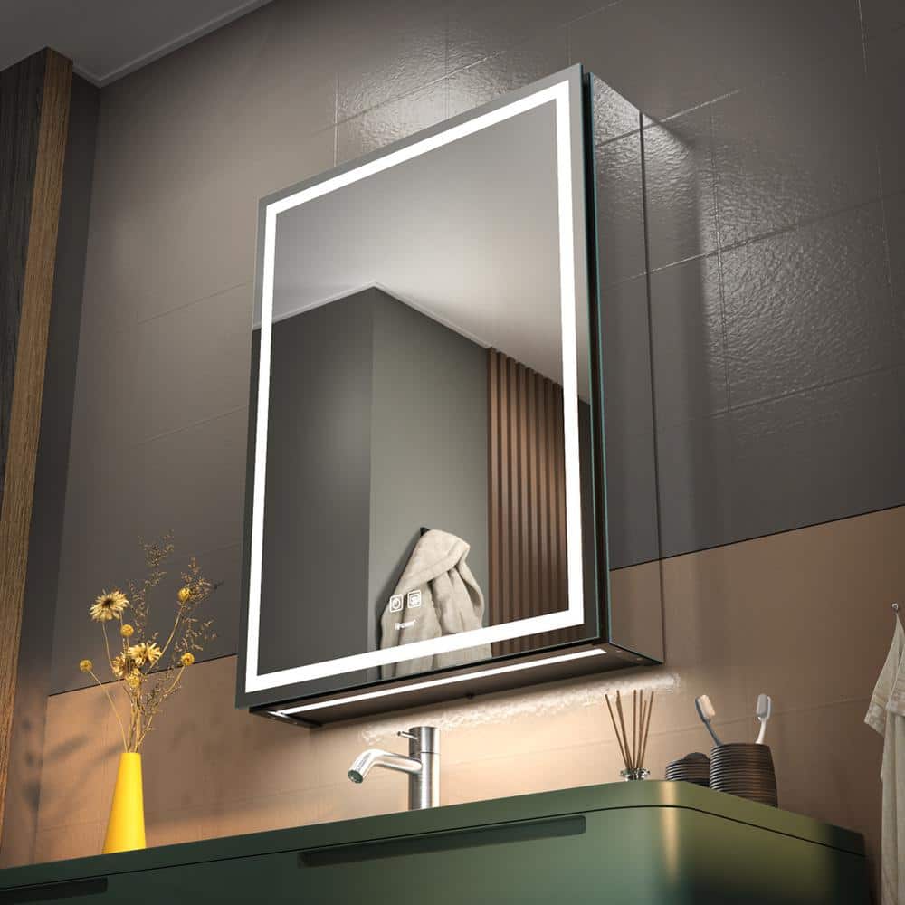 GANPE 20 in. W x 28 in. H Large Rectangular Silver Wall Mount LED Lighted Medicine Cabinet with Mirror