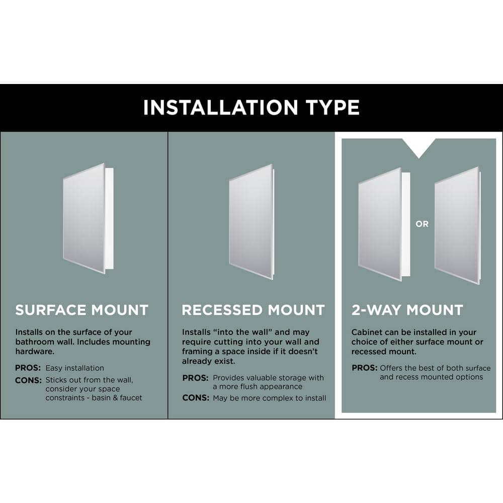 • Installation Flexibility: Choose between surface-mount or recessed options to fit your bathroom layout.