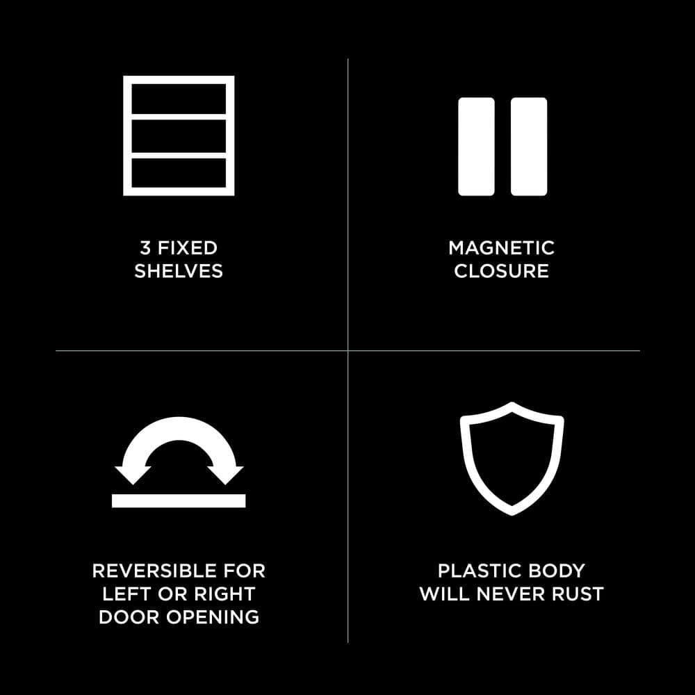 • Rust-Resistant: Durable plastic construction ensures the cabinet withstands damp bathroom conditions.