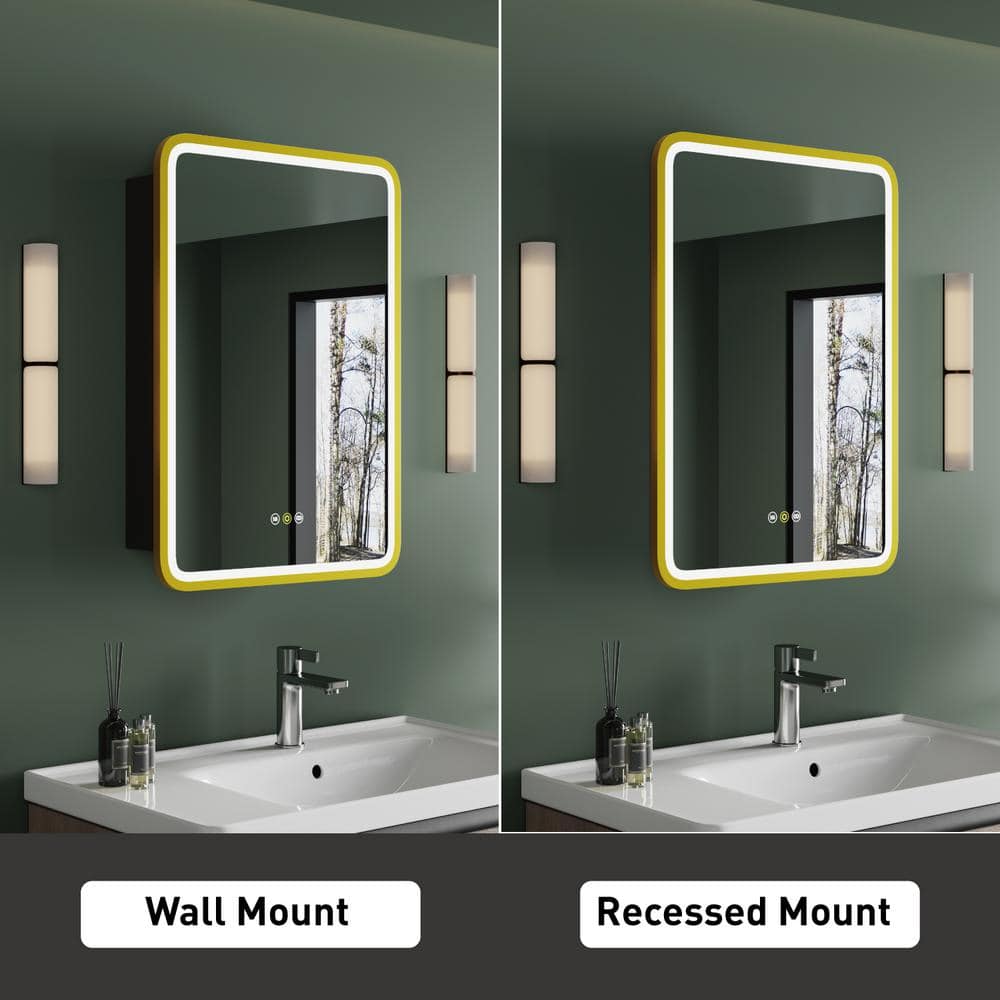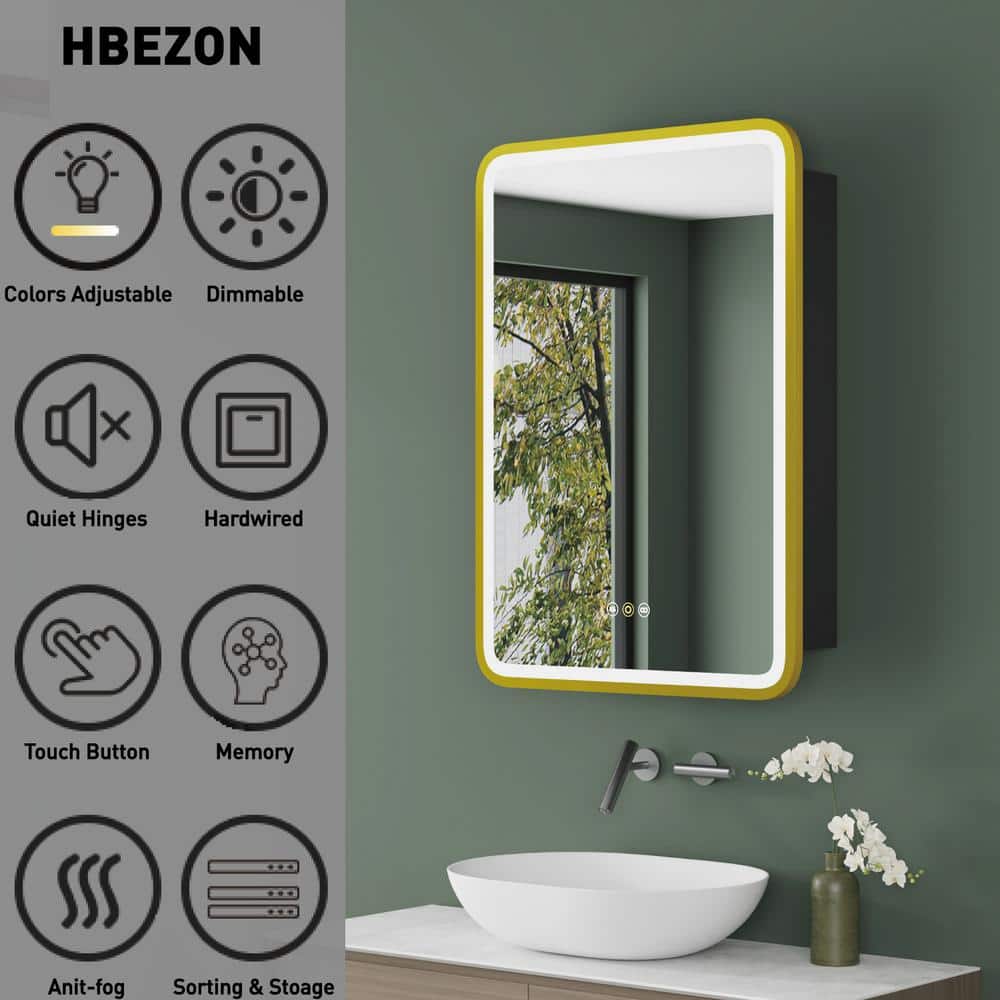 Elevate your bathroom with the HBEZON Thalia LED Medicine Cabinet. Featuring adjustable, three-color LED lighting and an anti-fog mirror, this cabinet offers modern style and exceptional functionality. Its memory feature ensures you won't lose settings, and with recessed or surface mounting, installation is a breeze.
