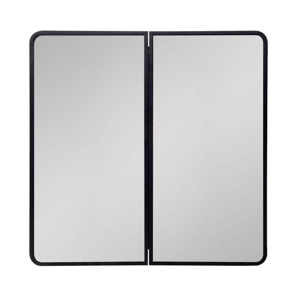 IHOMEadore 32 in. W x 32 in. H Rectangular Black Metal Wall Mount or Recessed Medicine Cabinet with Mirror in Bathroom
