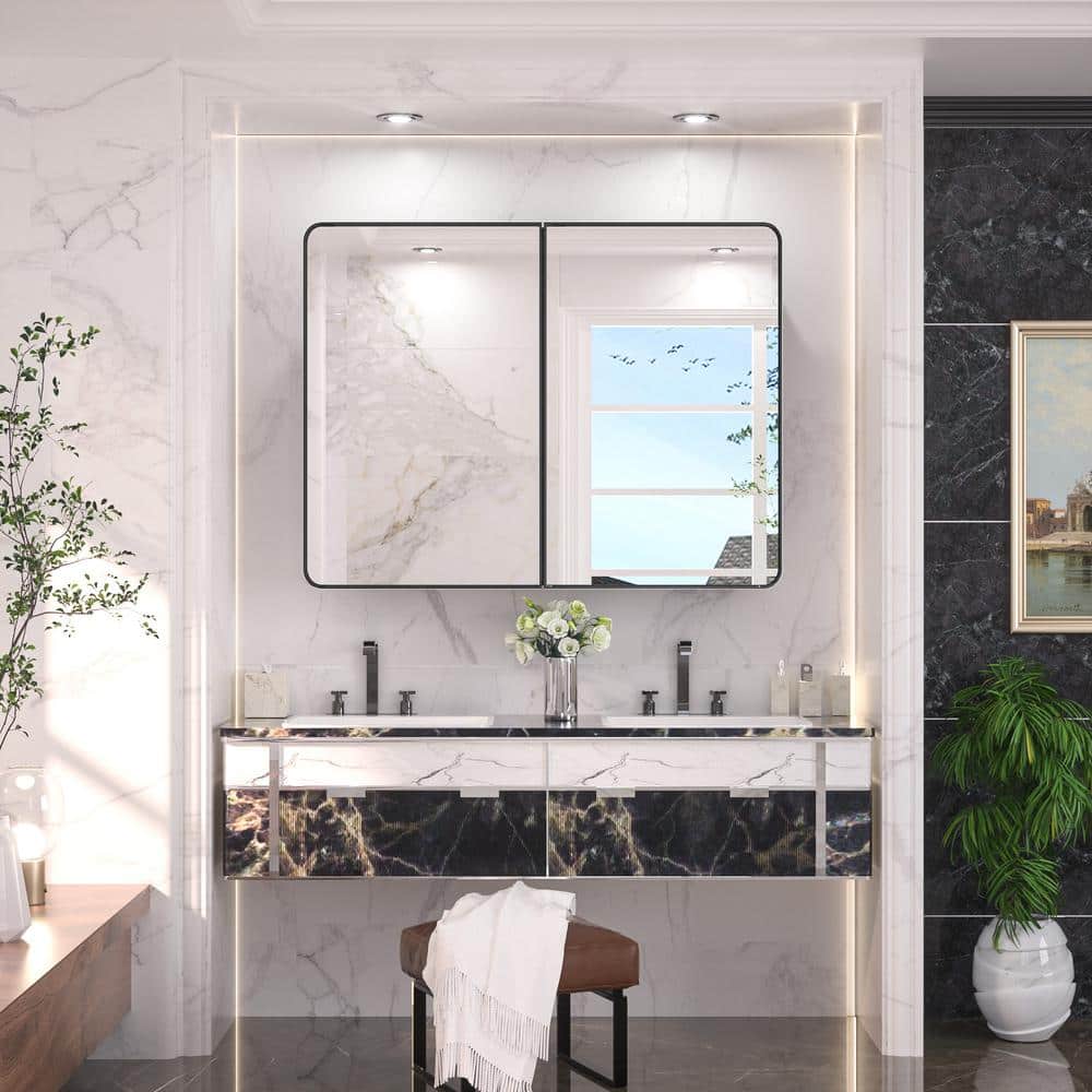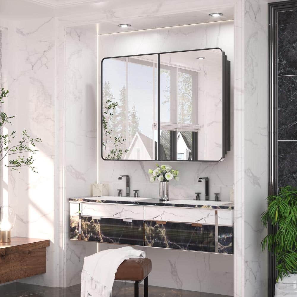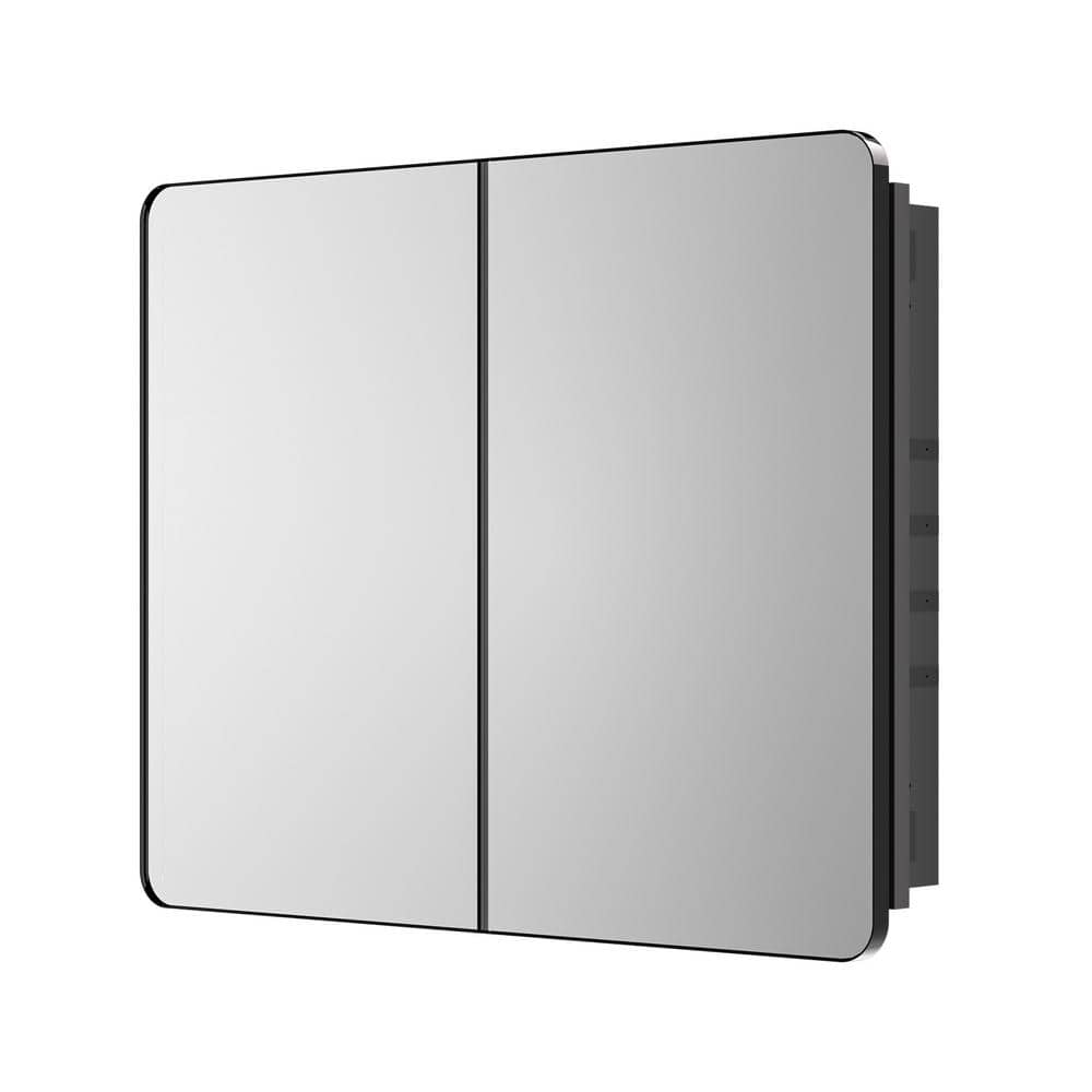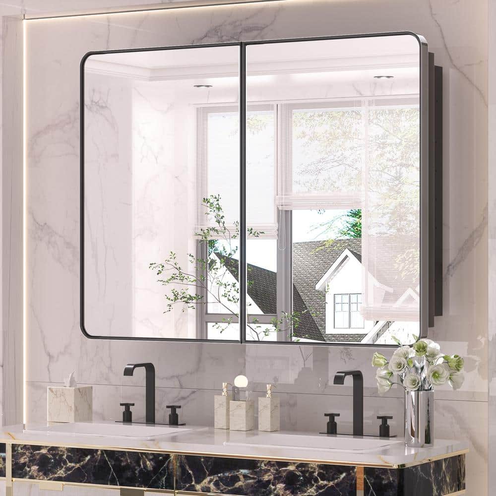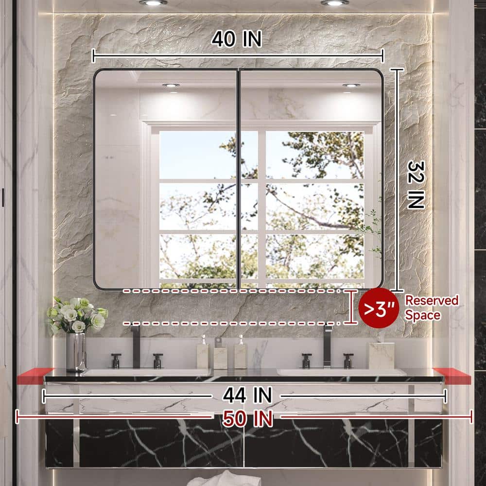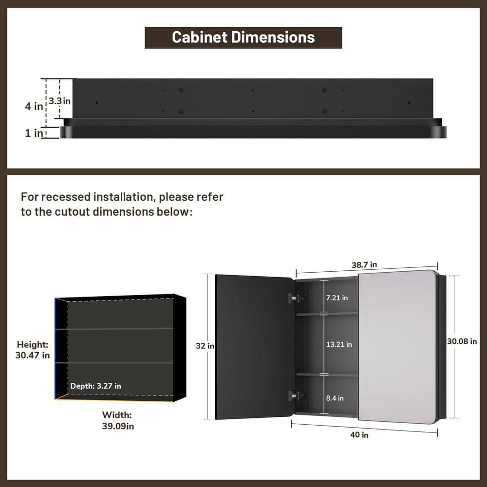 KeonJinn 40 in. W x 32 in. H Rectangular Black Stainless Steels Framed Recessed/Surface Mount Medicine Cabinet with Mirror