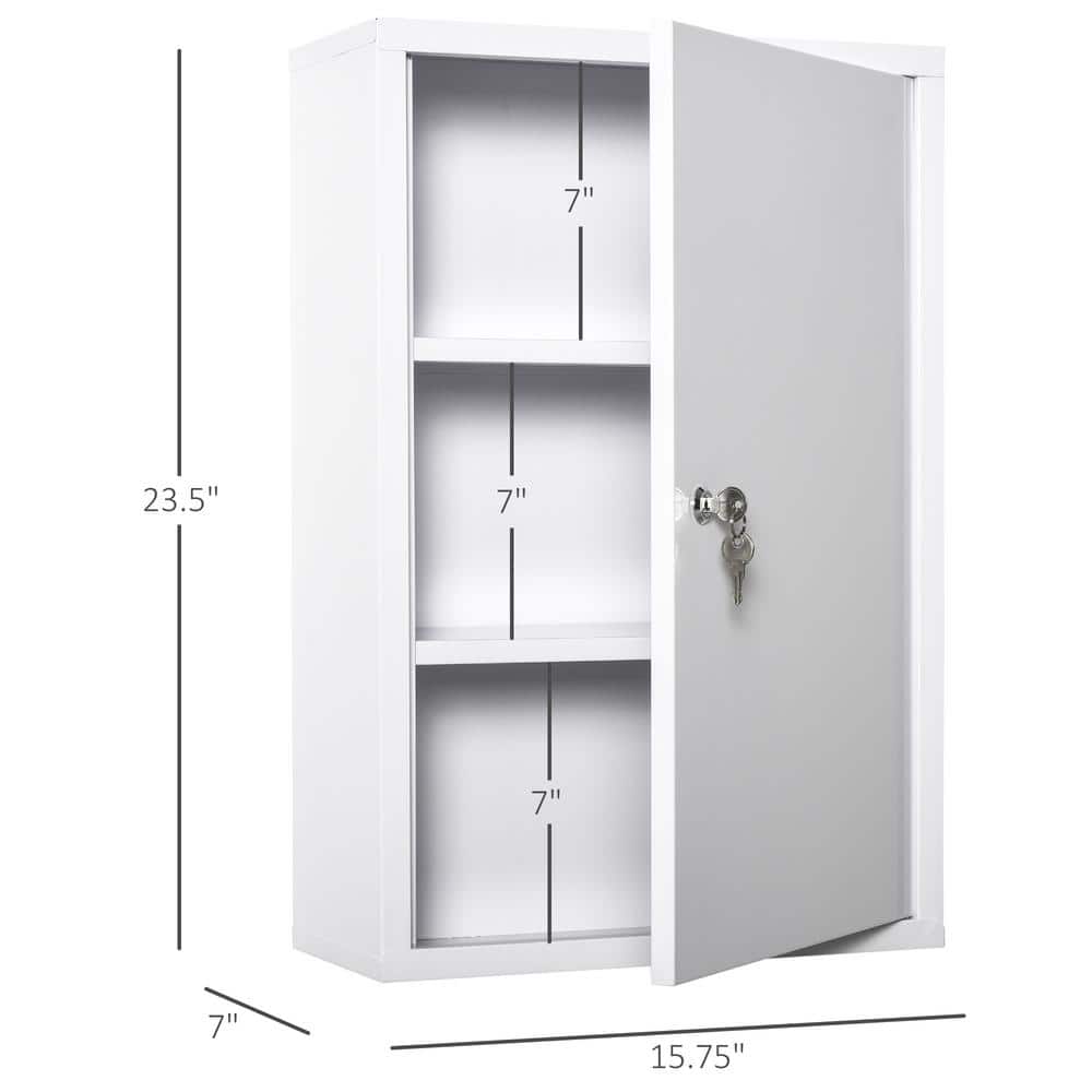 kleankin 15.75 in. W x 23.5 in. H Steel White Wall Surface Mount Medicine Cabinet without Mirror