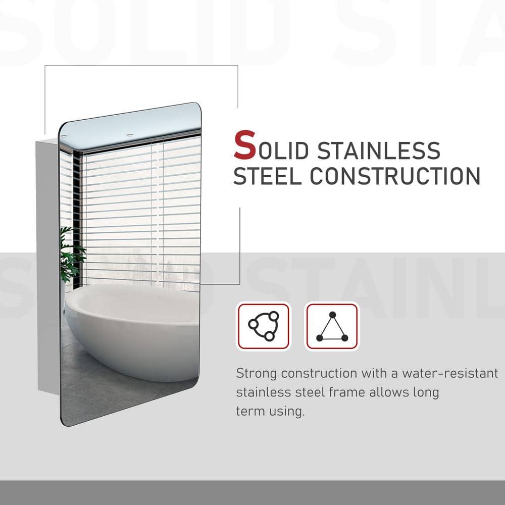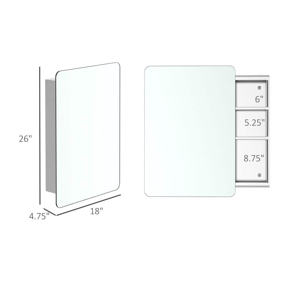 kleankin 18 in. W x 26 in. H Bathroom Silver Recessed/Surface Mount Medicine Cabinet with Mirror, Storage Shelf, Stainless Steel