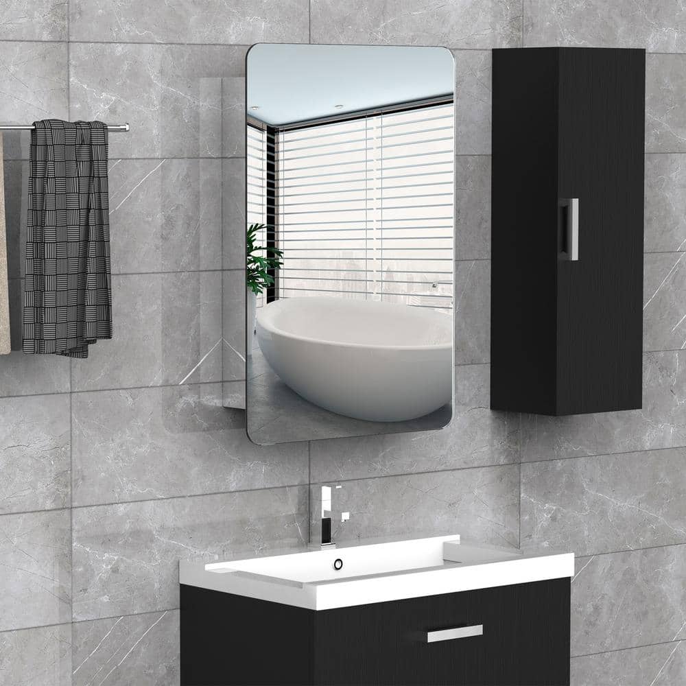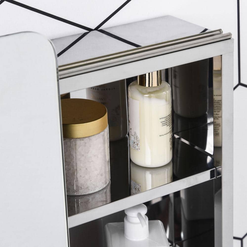 The kleankin 18 in. W x 26 in. H Silver Medicine Cabinet features a sleek mirrored sliding door with ample storage space behind, perfect for organizing bathroom essentials. Made from durable stainless steel, this stylish and functional piece blends seamlessly with modern décor.