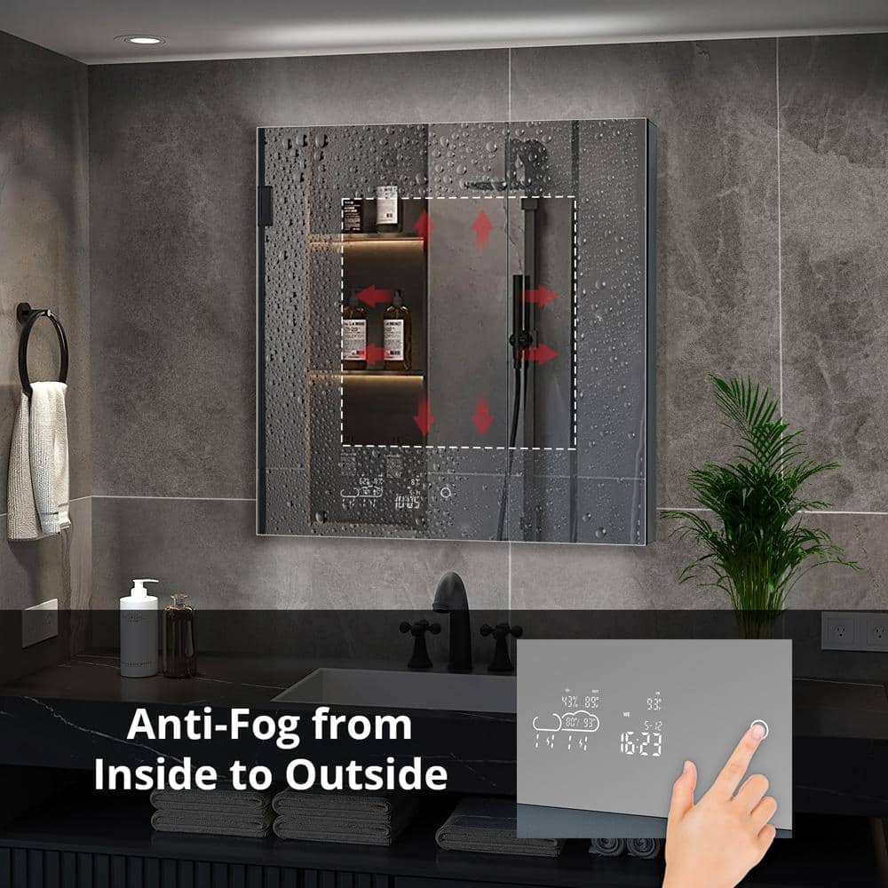 Lexora Savera 30 in. W x 32 in. H Recessed or Surface-Mount LED Mirror Medicine Cabinet with Defogger
