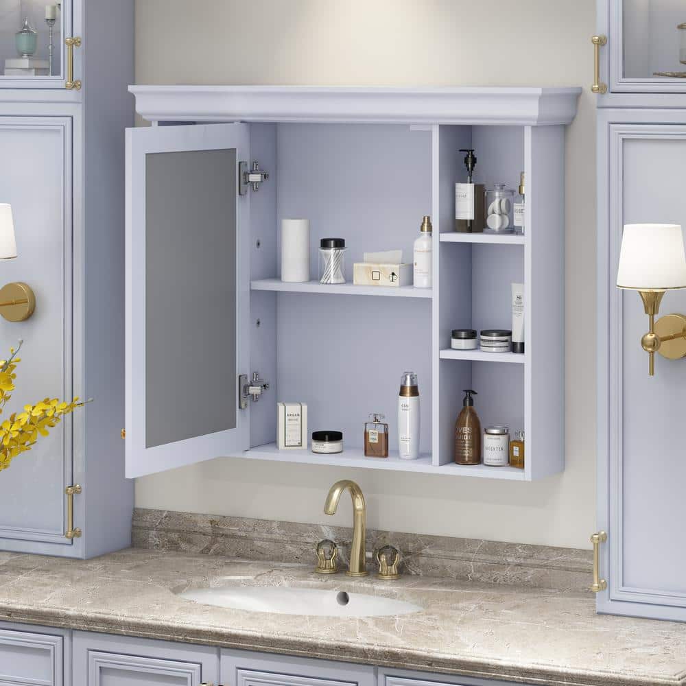 Enhance your bathroom with this Light Blue Medicine Cabinet, featuring a sophisticated design with a practical mirrored surface. Crafted for functionality and style, this cabinet provides ample storage while doubling as a chic, contemporary mirror to complete your bathroom's aesthetic.