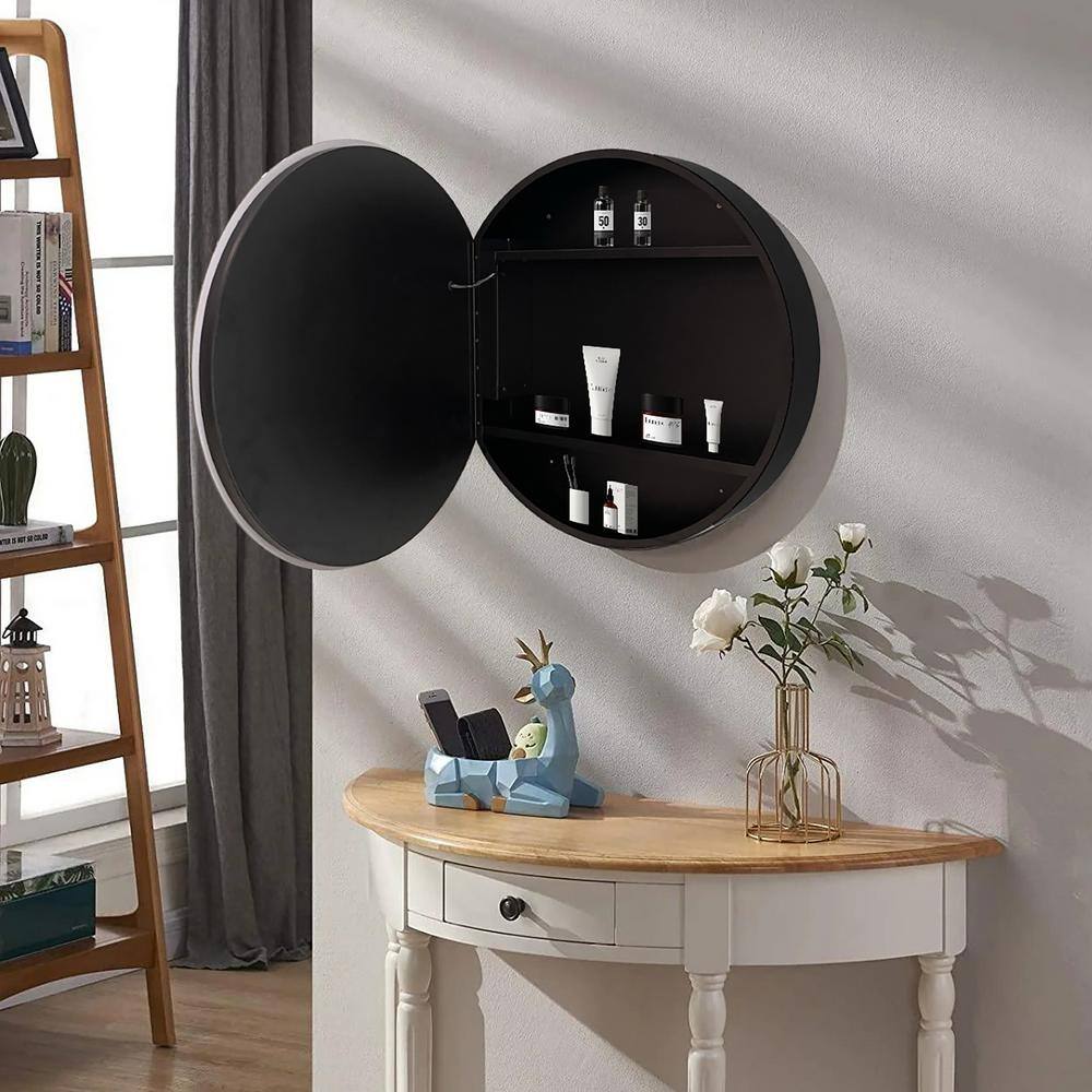 Staykiwi 26 in. W x 26 in. H Round Iron Medicine Cabinet with Mirror