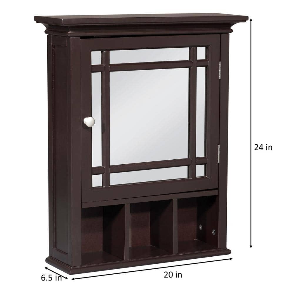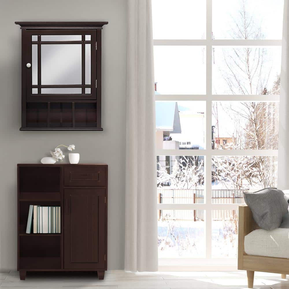 Teamson Home Neal 20 in. W x 24.13 in. H x 6.5 in. D Removable Wooden Medicine Cabinet with Mirrored Door in Espresso
