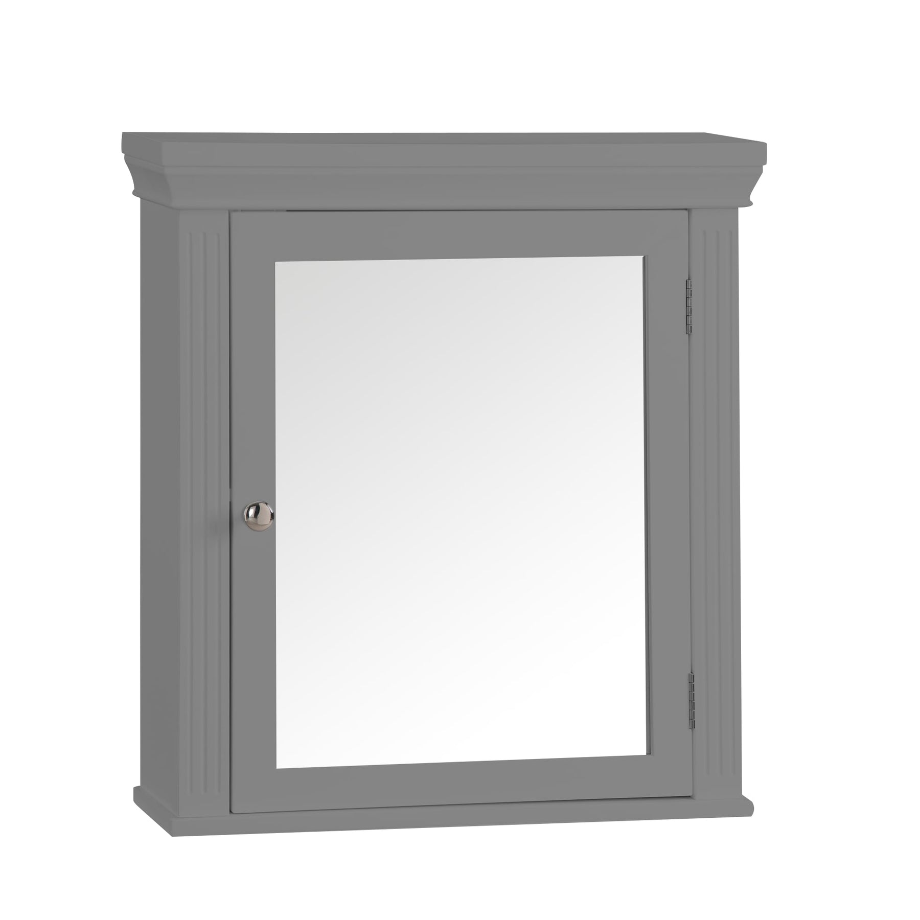 Enhance your bathroom decor and functionality with the Stratford Grey Mirrored Medicine Cabinet. Crafted from sustainable engineered wood, this cabinet is designed to resist warping and cracking while offering a stylish, mirrored front with elegant crown molding. It's a perfect blend of classic charm and modern utility, providing additional storage and a clutter-free environment.