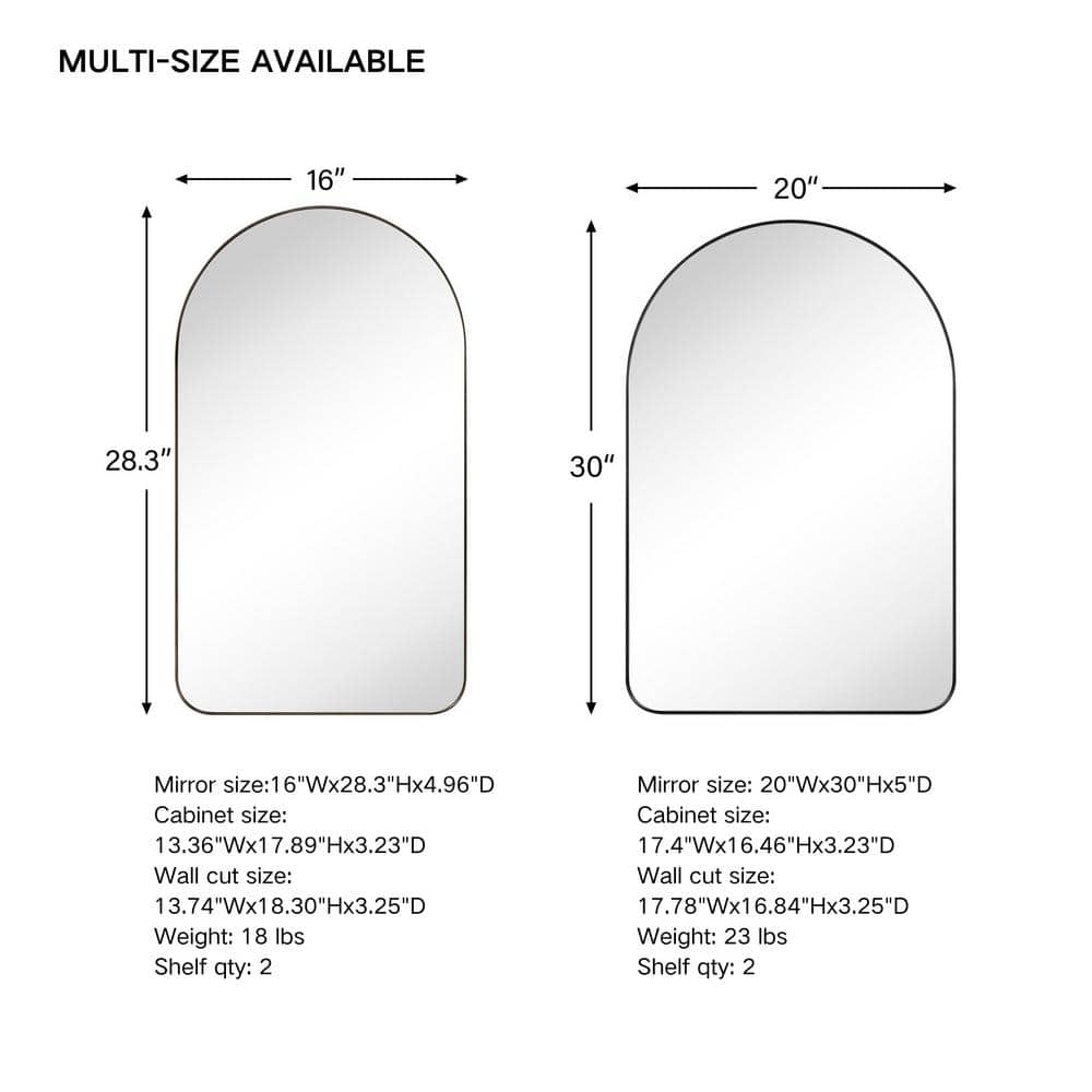 TEHOME Aristes 16 in. W x 28.3 in. H Arched Metal Framed Recessed Medicine Cabinet with Mirror for bathroom in Gold