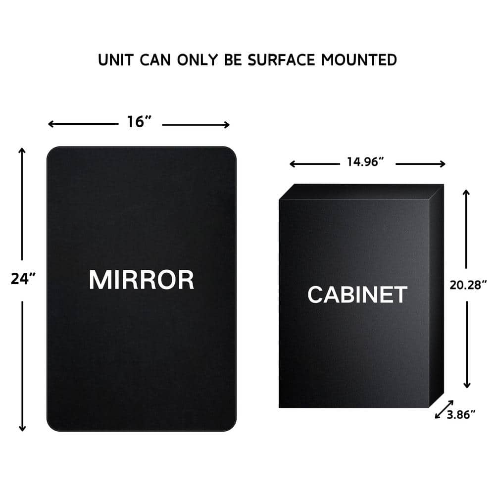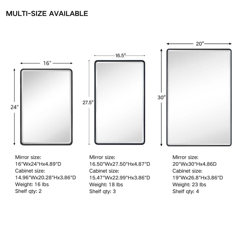 TEHOME Eldee 16 in. W x 24 in. H Surface Mount Rectangular Metal Framed Bathroom Medicine Cabinet with Mirror in Matt Black