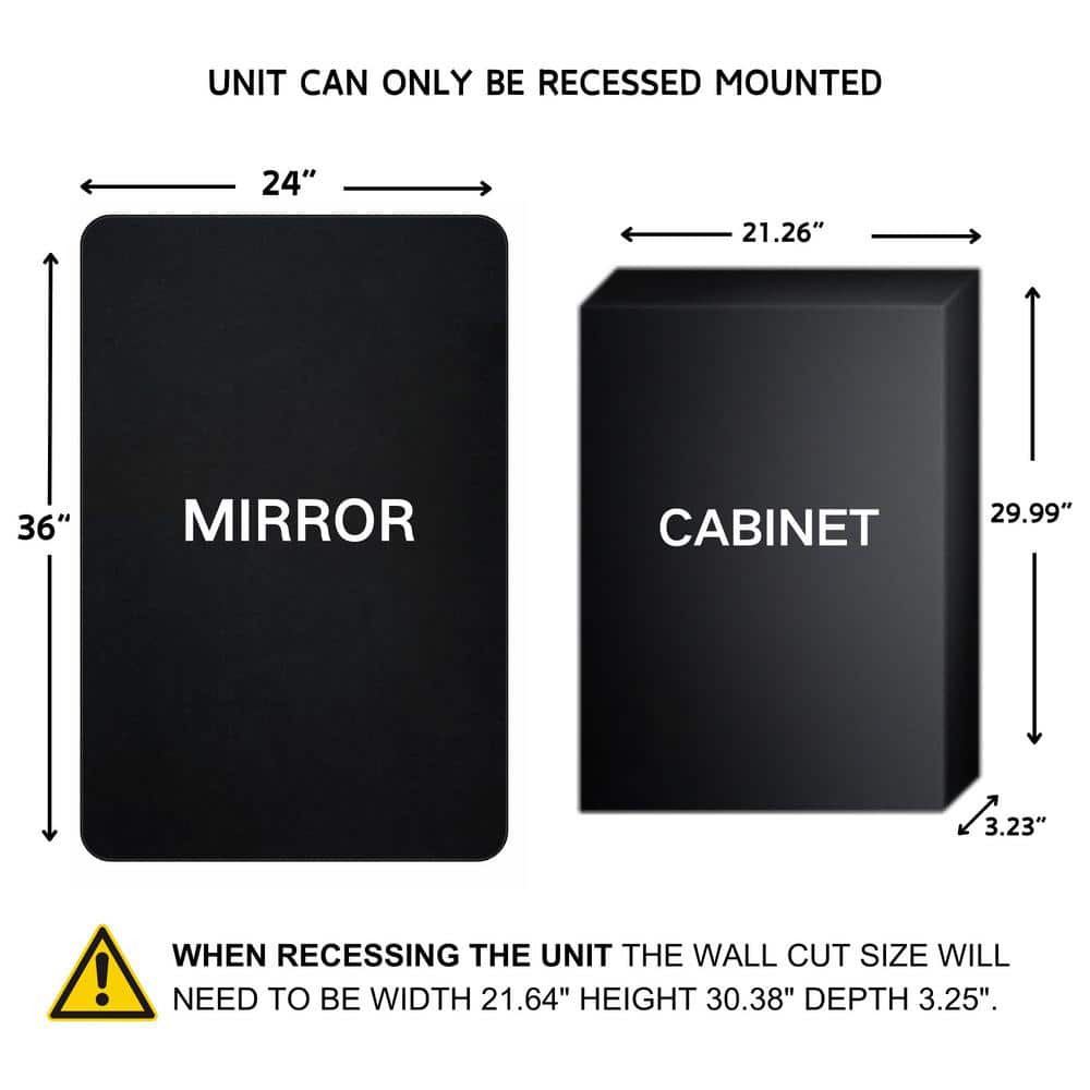 TEHOME Farmhouse 24 in. W x 36 in. H Recessed Rectangular Metal Framed Bathroom Medicine Cabinets with Mirror in Matt Black