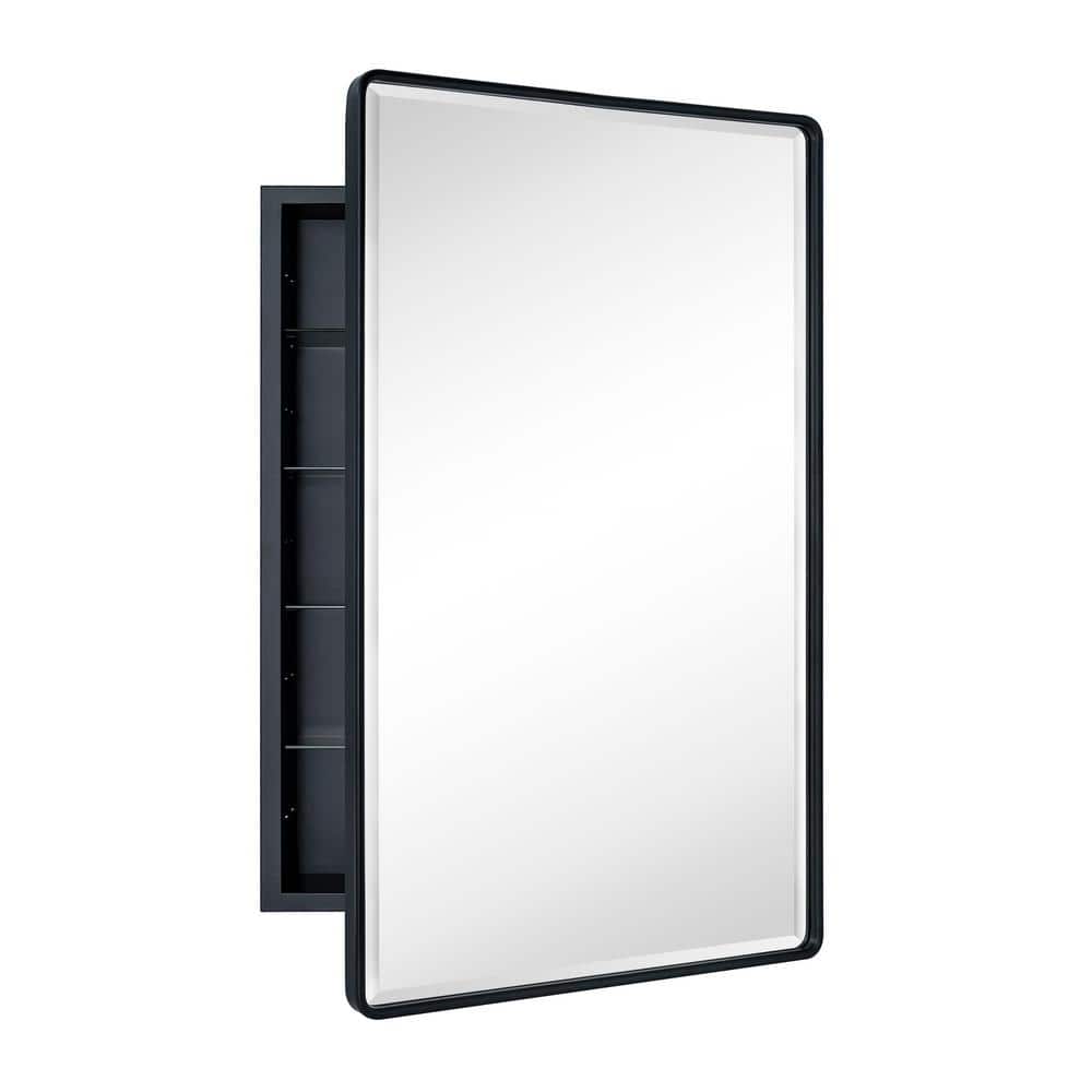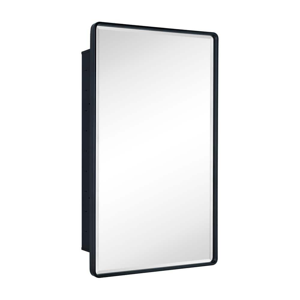 Enhance your bathroom decor with the TEHOME Farmhouse Medicine Cabinet. This versatile piece features a durable metal frame in a sophisticated matte black finish, adorned with a chic beveled mirror. Offering both style and functionality, it's perfect for elevating any modern bathroom design.