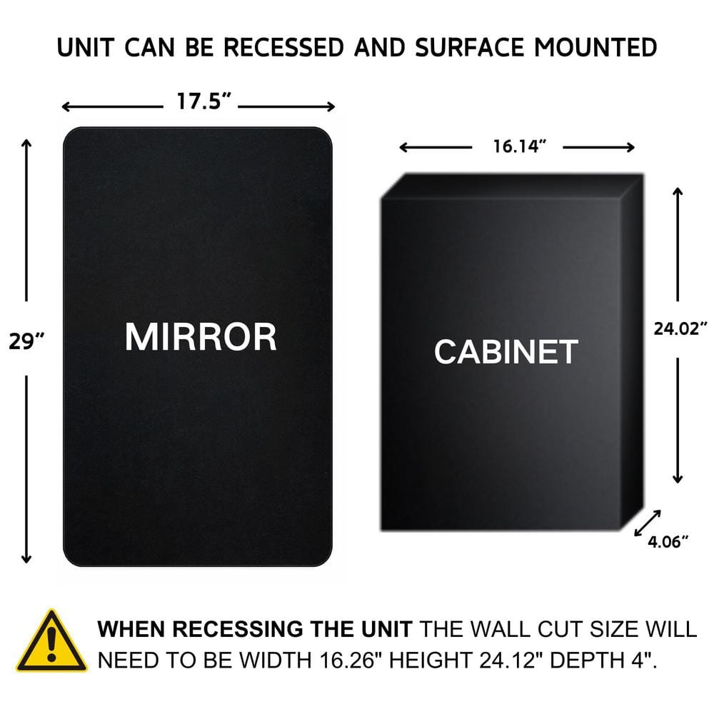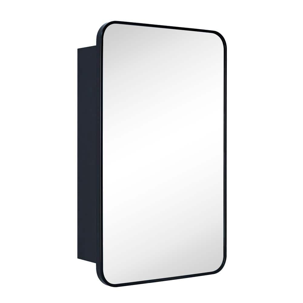 TEHOME Garnes 17.5 in. W x 29 in. H Rectangular Recessed or Surface Mount Metal Framed Medicine Cabinet with Mirror in Black