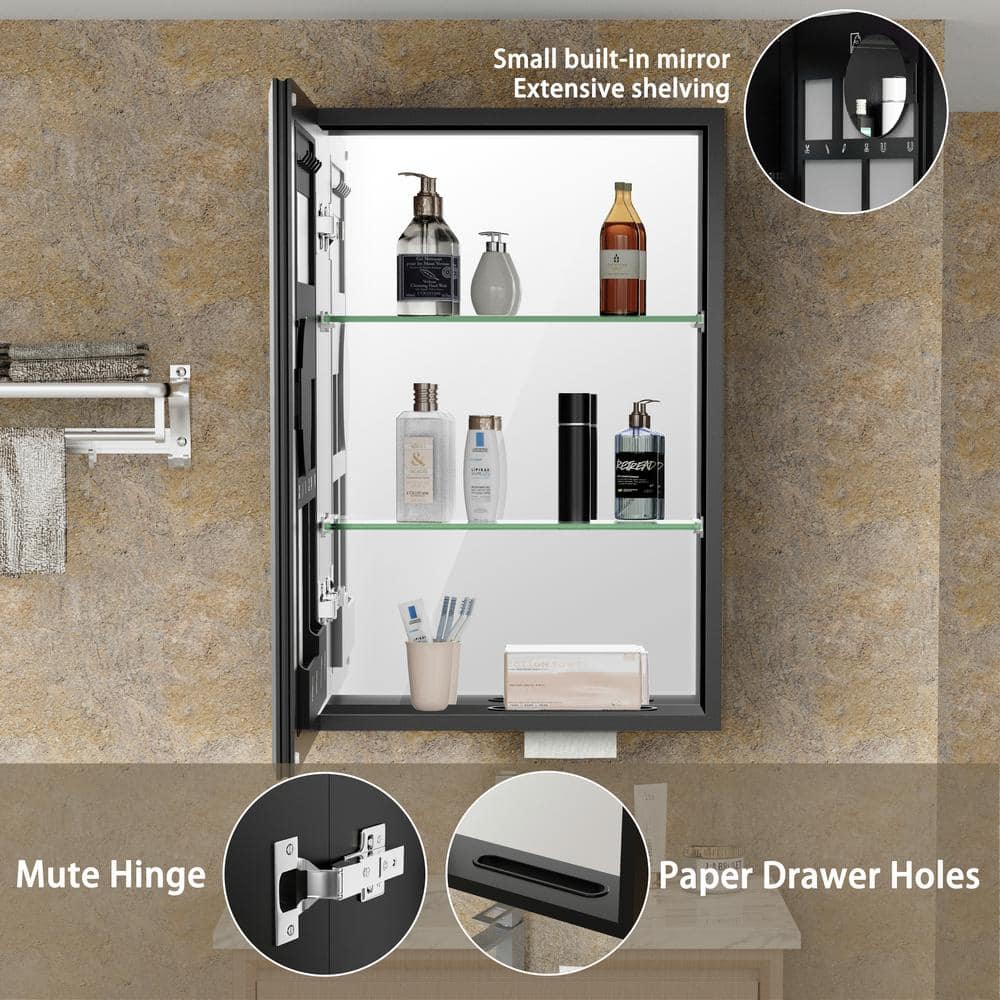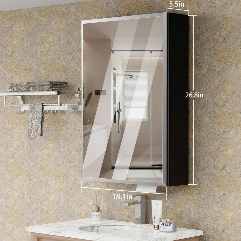 tunuo 18 in. W x 26.8 in. H Rectangular Aluminum Surface Mount Medicine Cabinet with Mirror, Tissue Drawer Hole, 3x Magnifier