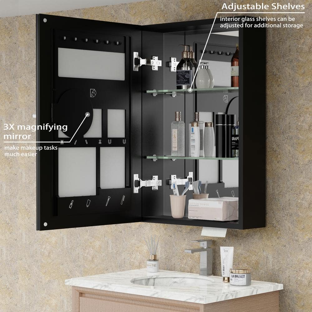 Upgrade your bathroom with the sleek, versatile Tunuo Aluminum Medicine Cabinet. Featuring a frameless beveled mirror, this durable aluminum cabinet includes a 3x magnifier and a convenient tissue drawer hole. With adjustable tempered-glass shelves, it maximizes storage while maintaining a compact, stylish design.