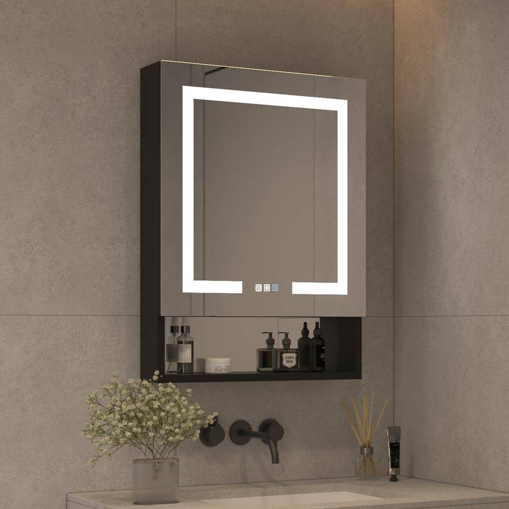 Elevate your bathroom with this chic and functional Modern Aluminum Medicine Cabinet. Designed with an anti-fog mirror and built-in adjustable lighting, it ensures a clear and well-lit reflection for all your grooming needs. Its moisture-proof aluminum build and silent hinges offer durability and quiet elegance.