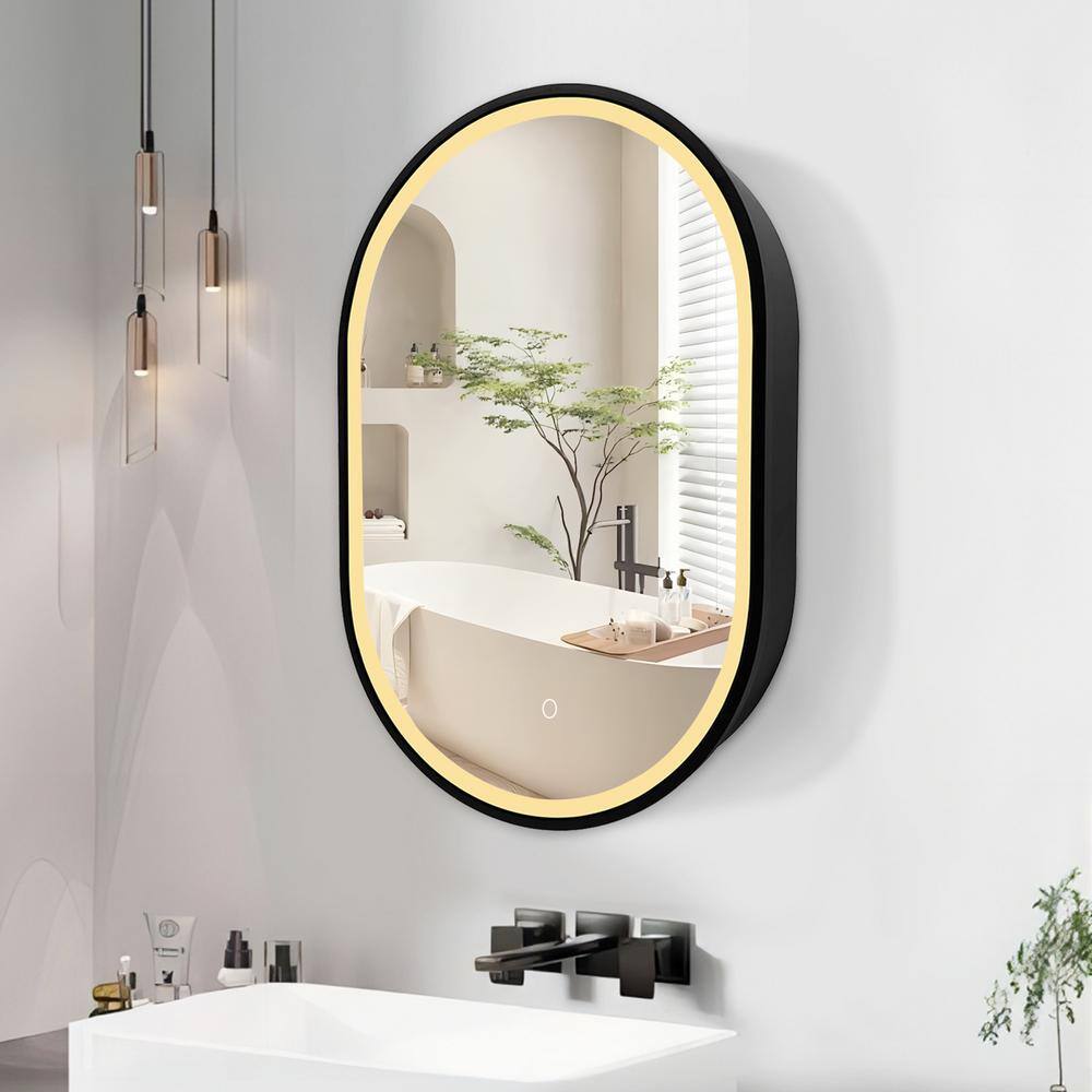 Envision a space where practicality meets avant-garde design through an extraordinary medicine cabinet. The UPIKER Oval LED Medicine Cabinet envelops your bathroom in subtle luminescence with a touch of sophistication, courtesy of its graceful black aluminum frame. Its standout LED lighting casts a homely yet lavish glow, reimagining ordinary self-care moments into a ritual of luxury. Integrate this piece seamlessly into any modern space, effortlessly marrying style and utility. An exemplary addition to both conventional and contemporary homes, it transcends functionality, offering aesthetic refinement for those who cherish timeless elegance.