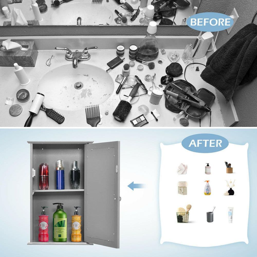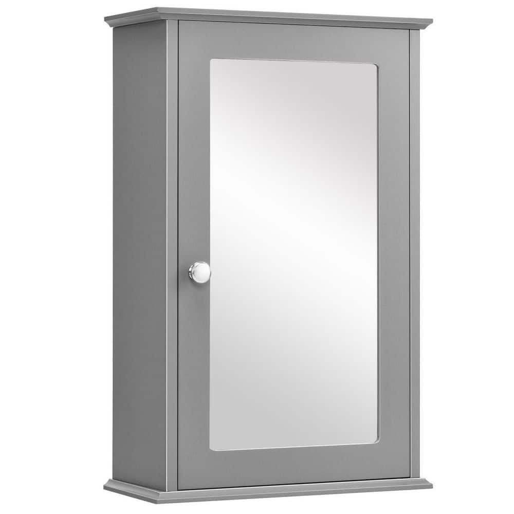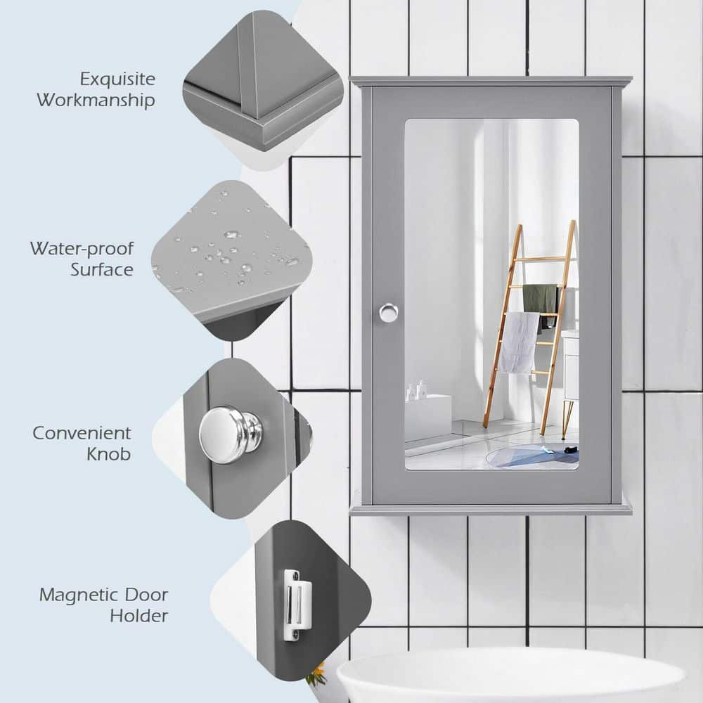 WELLFOR Gray MDF Medicine Cabinet with Mirror