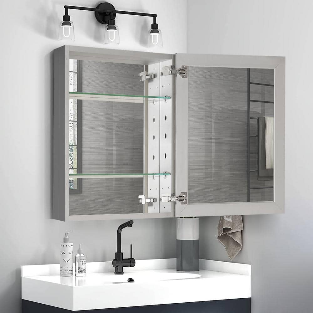 Transform your bathroom into a sanctuary of elegance and functionality with the WELLFOR Silver Aluminum Medicine Cabinet—shop now to experience luxury!