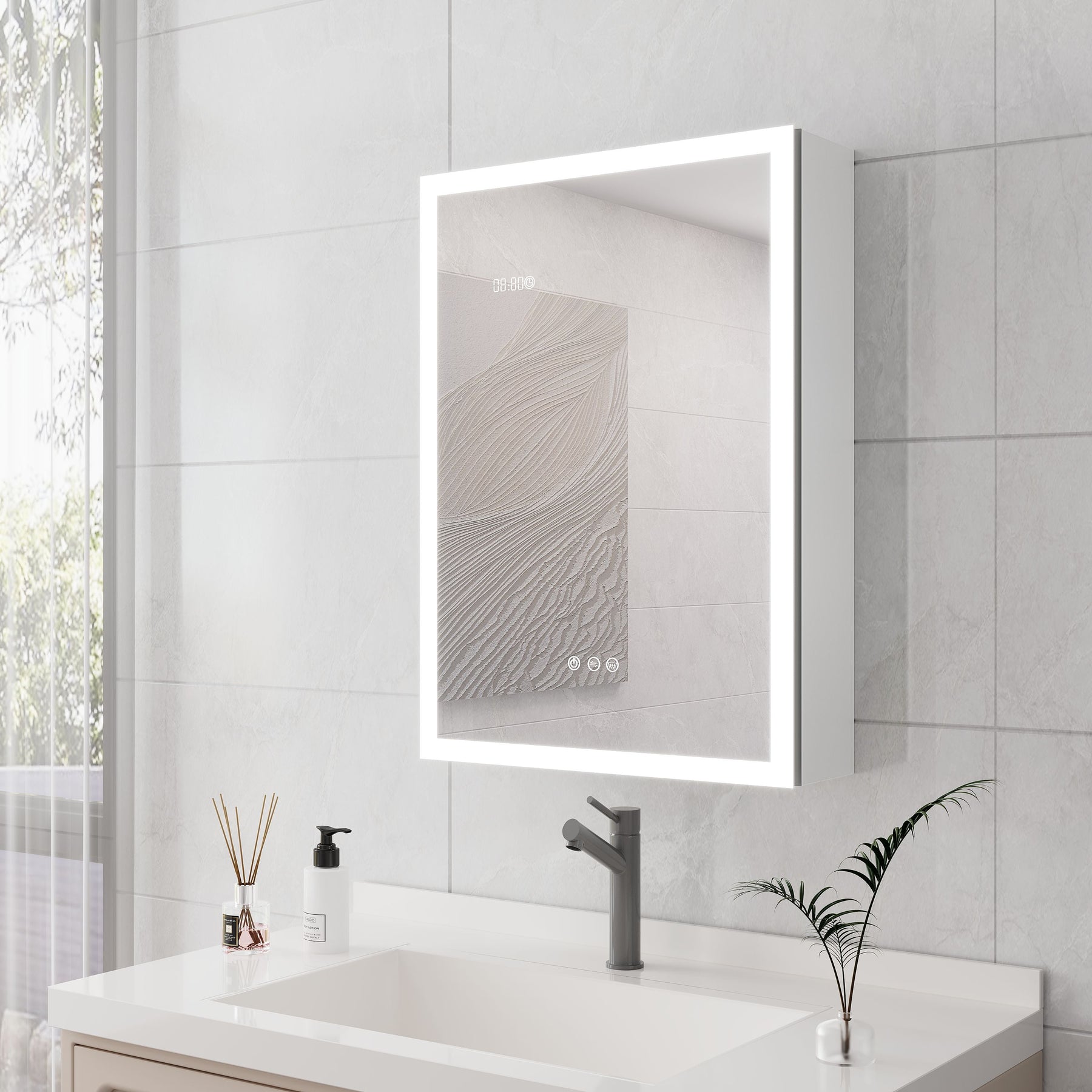 Streamline your morning routine with the WELLFOR 20-in x 28-in Lighted LED Medicine Cabinet. Designed with a fog-free mirror and soft-close door, this cabinet brings style and functionality to any bathroom. Its adjustable lighting and memory function ensure you always have the perfect ambiance at your fingertips.